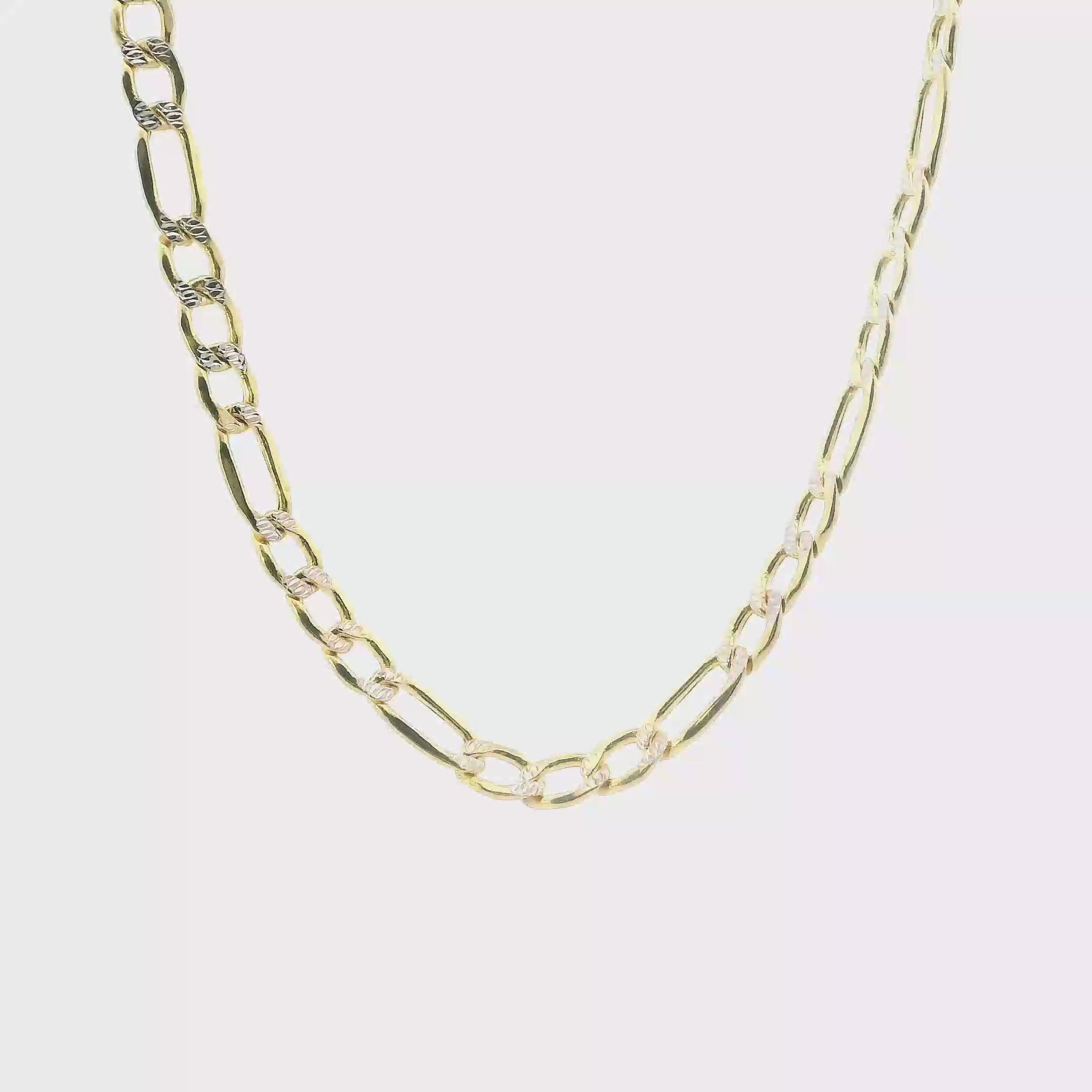 This is a beautiful gold figaro chain that is in clean preowned condition. It has been authenticated and polished by our in-house goldsmith.