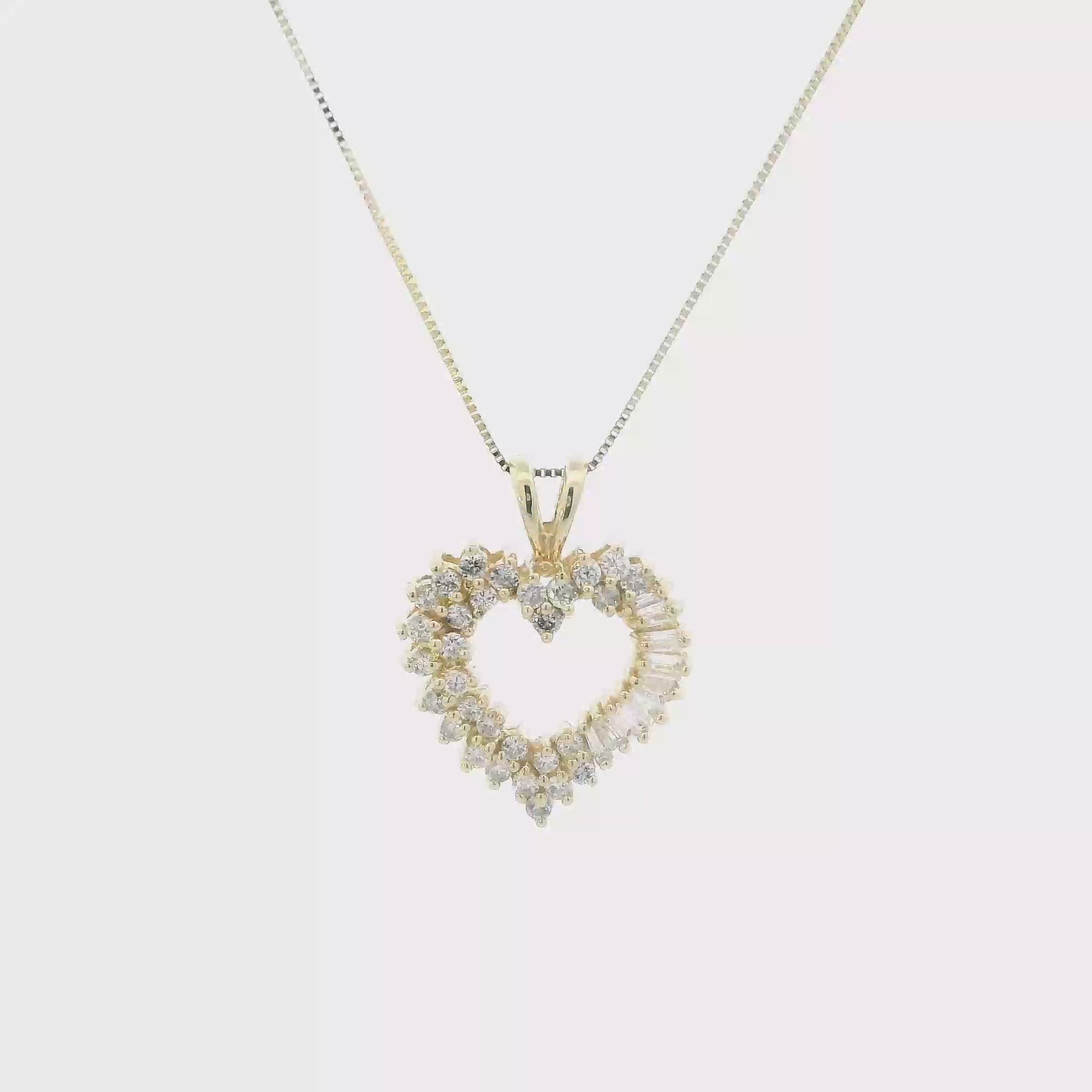 This is a beautiful diamond heart pendant & box chain that is in clean preowned condition. It has been authenticated and polished by our in-house goldsmith / gemologist.