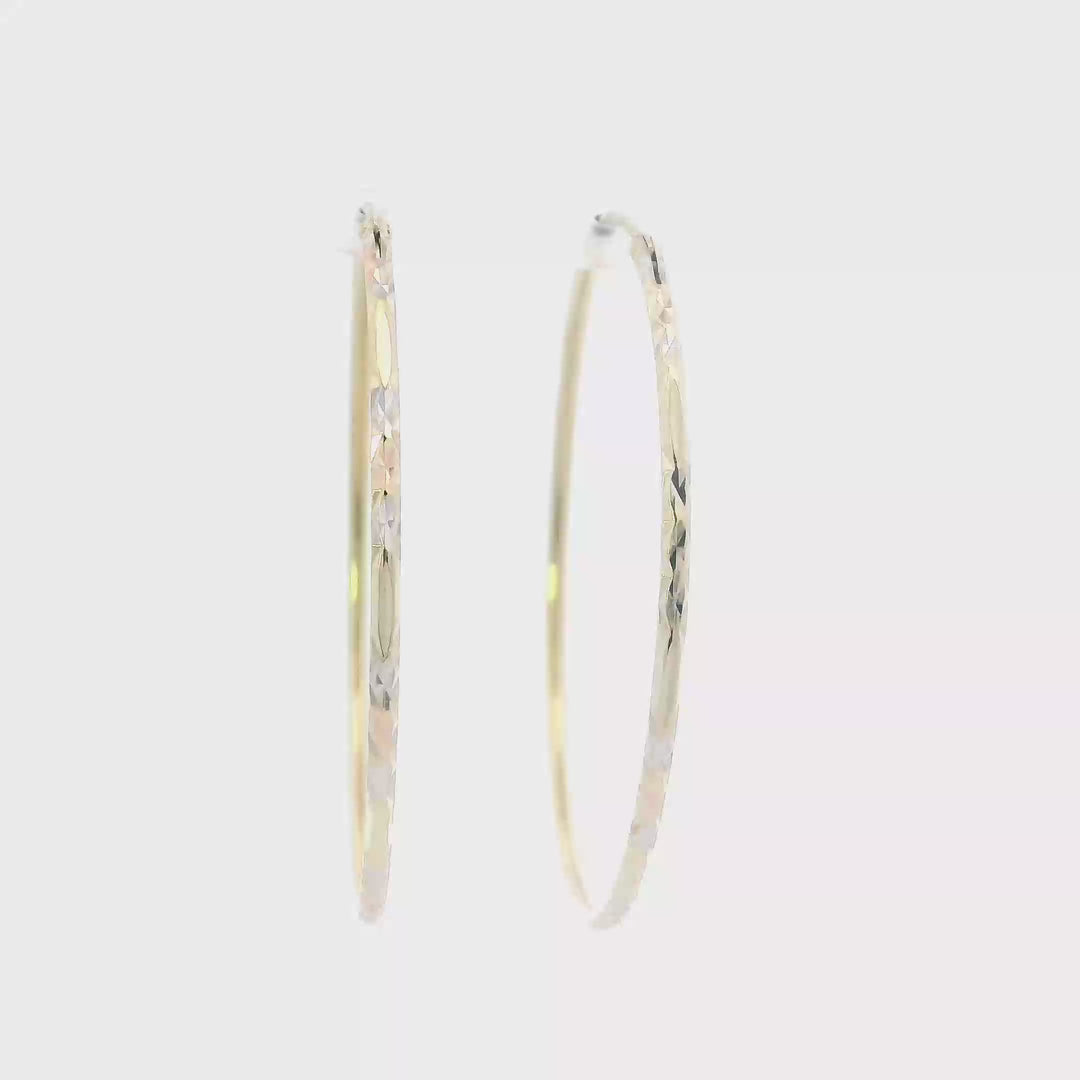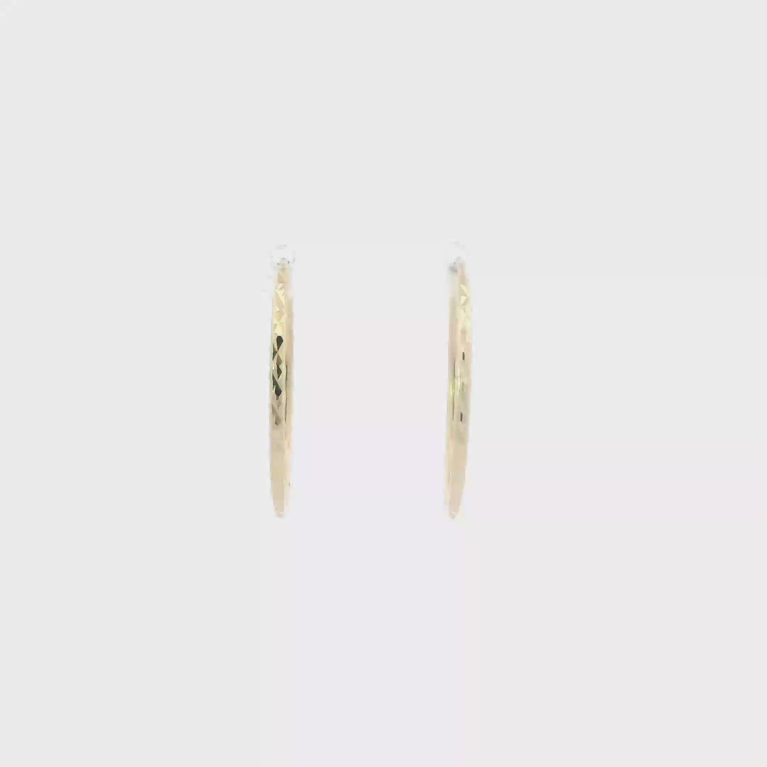 14K Yellow Gold Diamond Cut Hoop Earrings