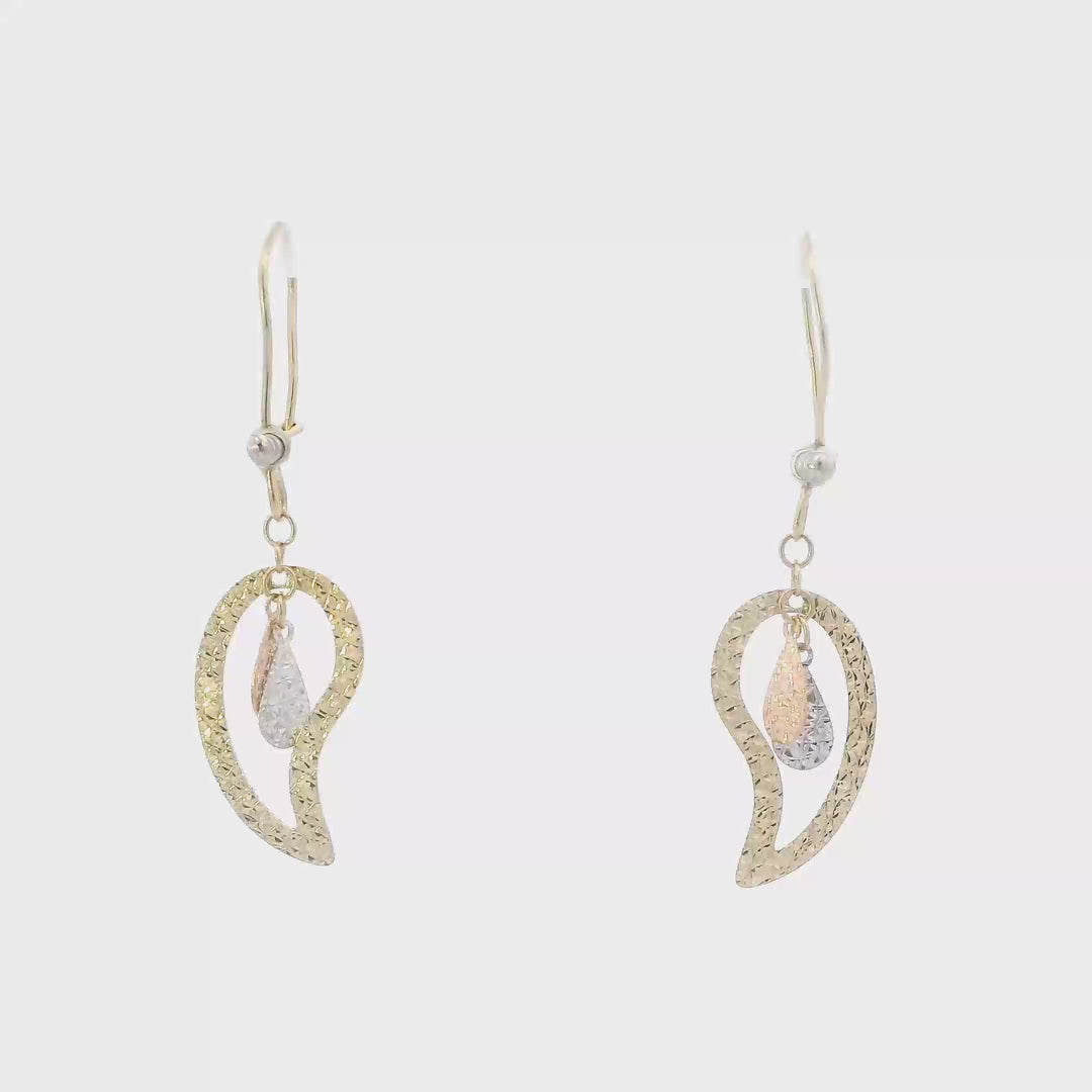 10K Tri Color Gold Twisted Dangle Earrings