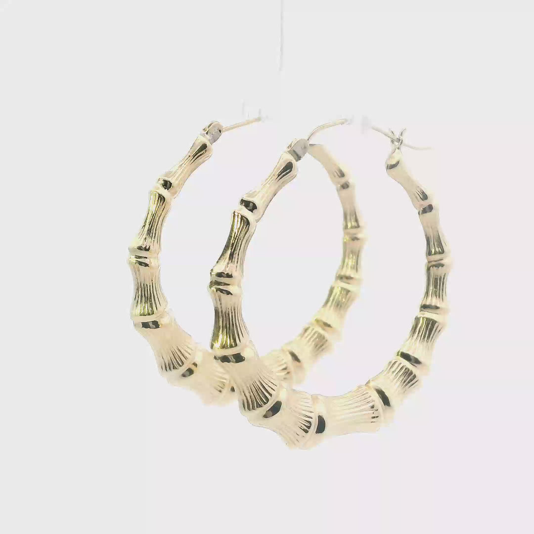 10K Yellow Gold Bamboo Hoop Earrings