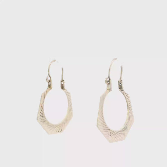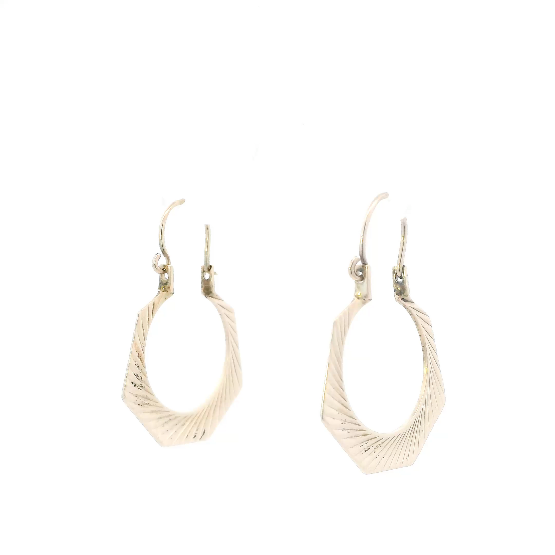 This is a beautiful gold diamond cut flat hoop earring set that is in clean preowned condition. It has been authenticated and polished by our in-house goldsmith.