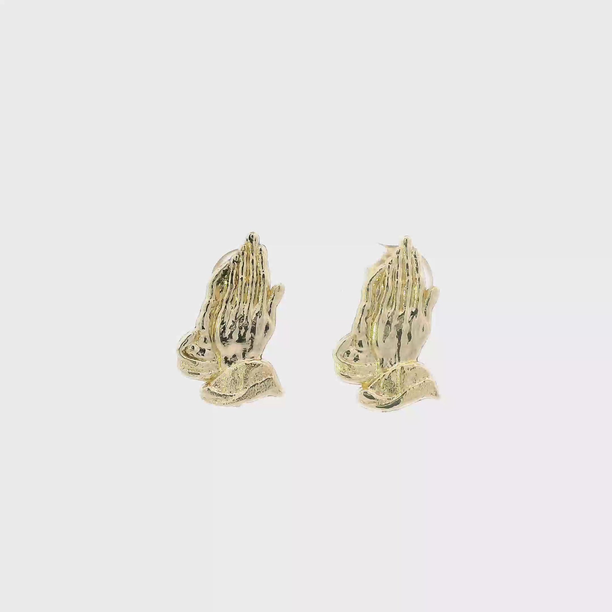 This is a beautiful gold praying hands stud earring set that is in clean preowned condition. It has been authenticated and polished by our in-house goldsmith.