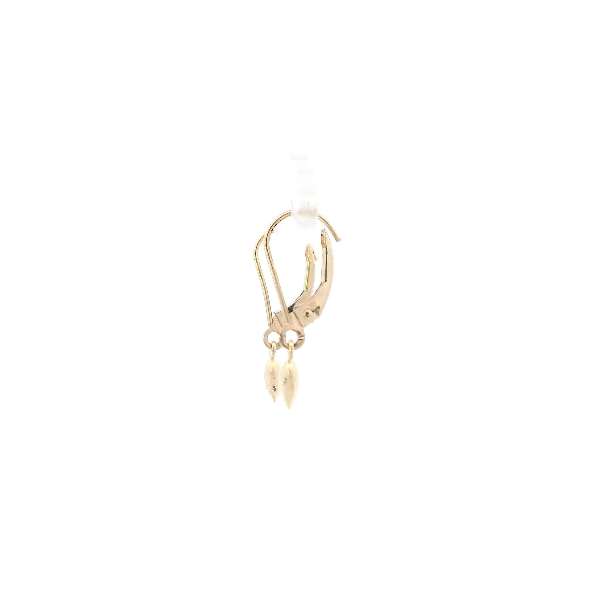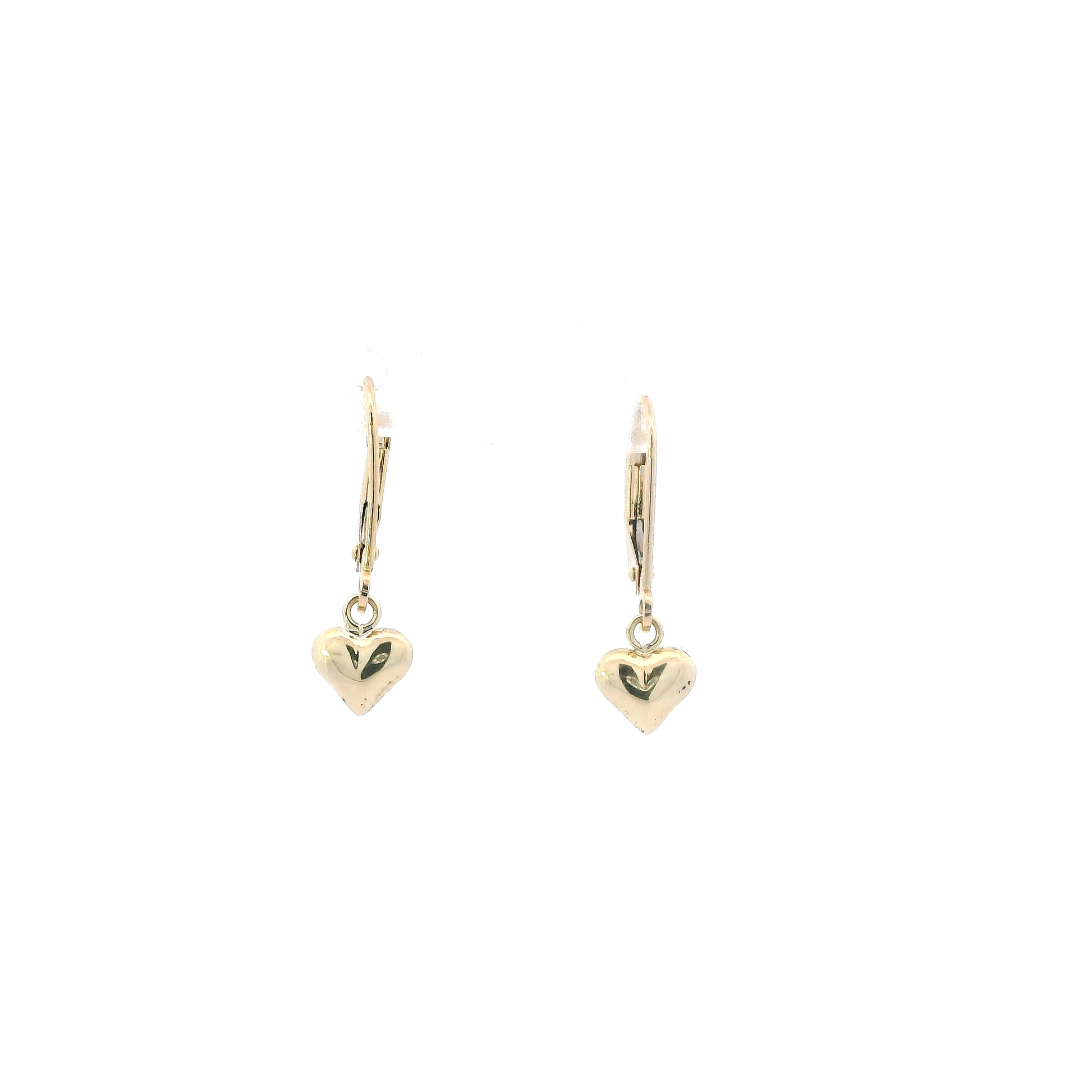 10K Yellow Gold Puff Heart Dangle Lever Back Earrings