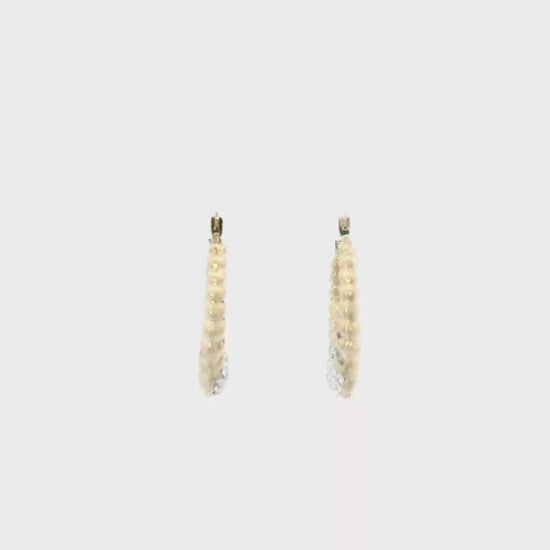 10K Yellow Pave Crystal Scalloped Hoop Earrings