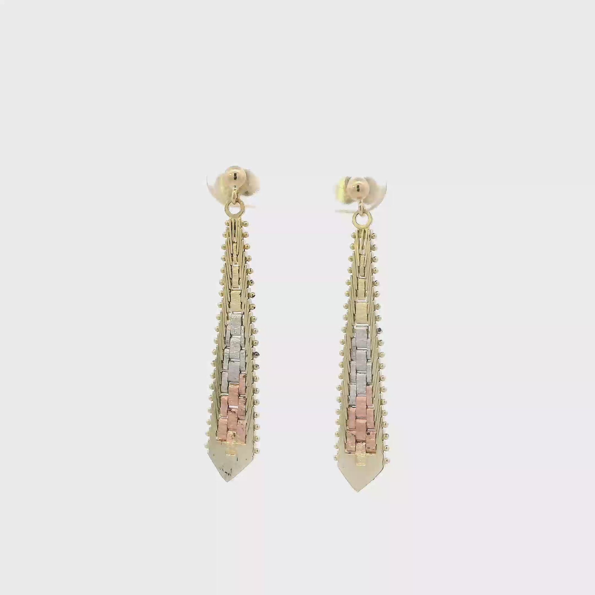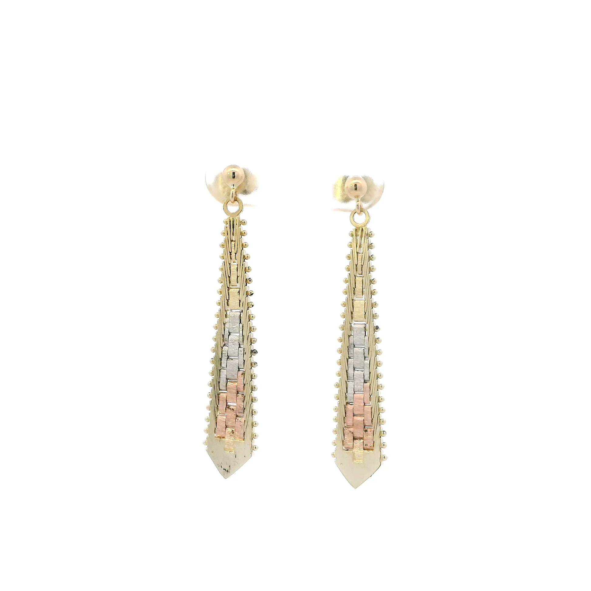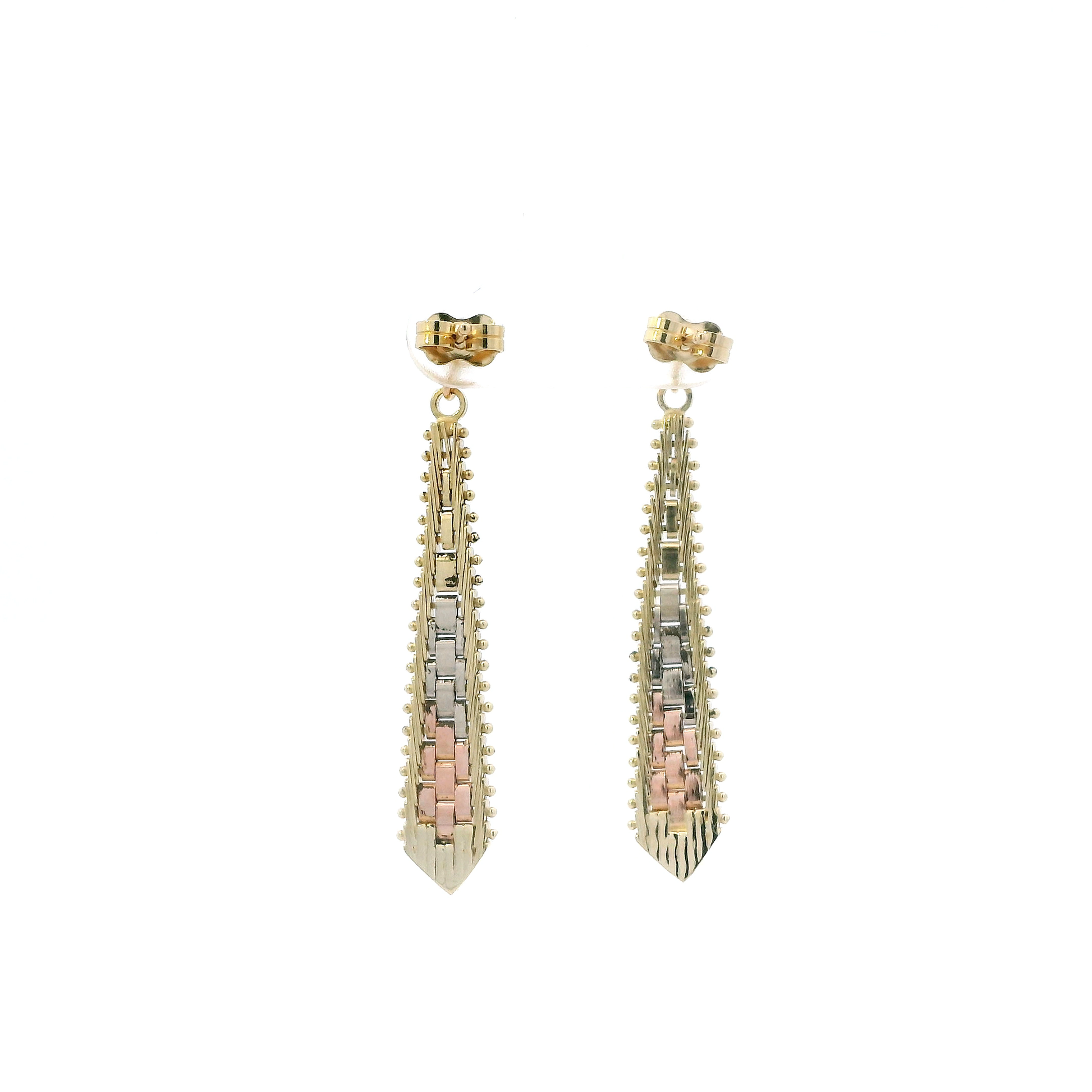 14K Tri Color Riccio Dangle Earrings