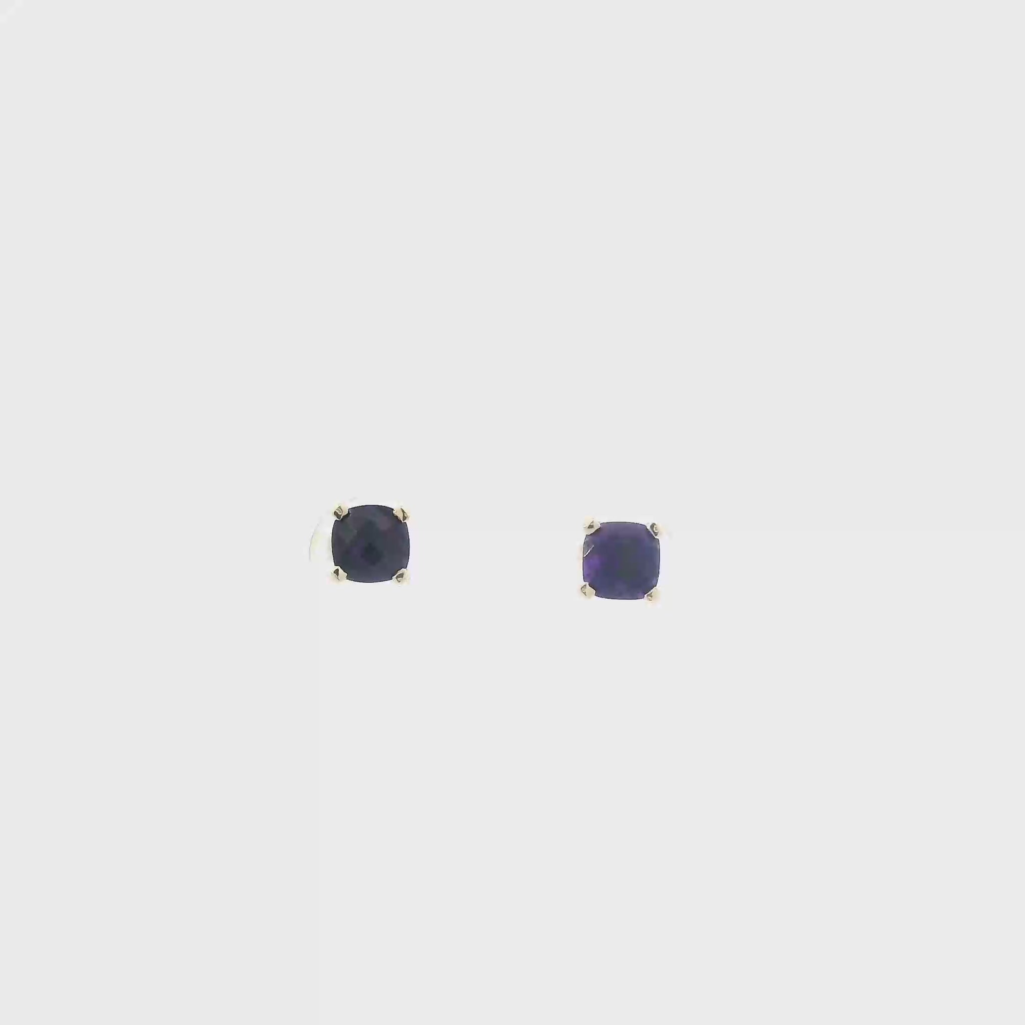 14K Yellow Gold Cushion Checkerboard Amethyst Stud Earrings