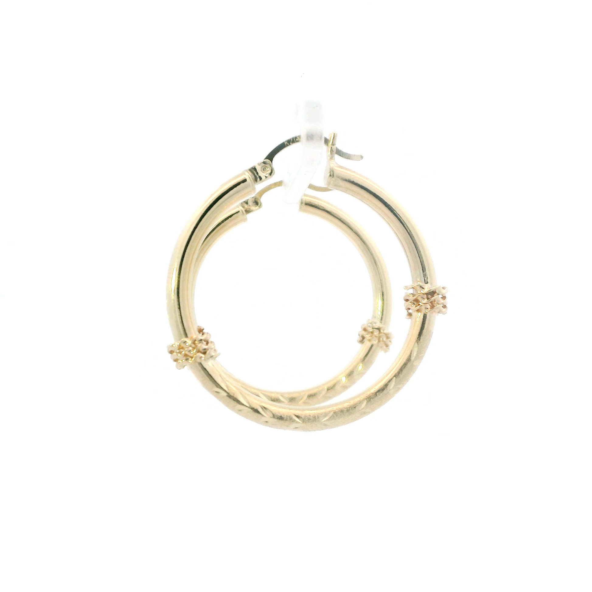 This is a beautiful gold diamond cut tube hoop earring set that is in clean preowned condition. It has been authenticated and polished by our in-house goldsmith.