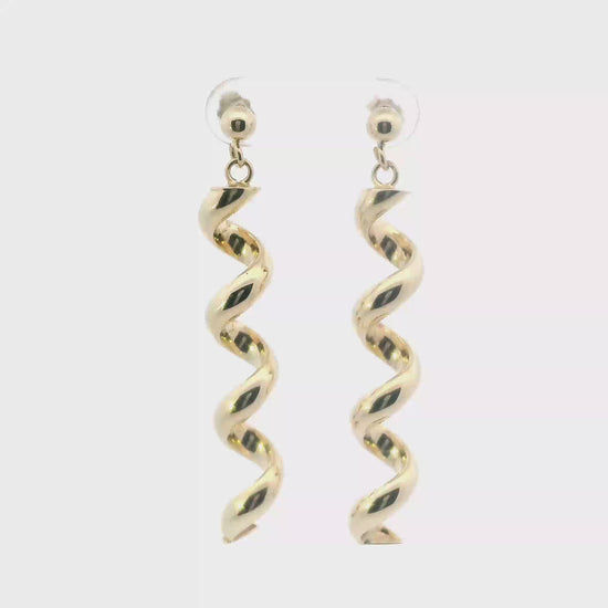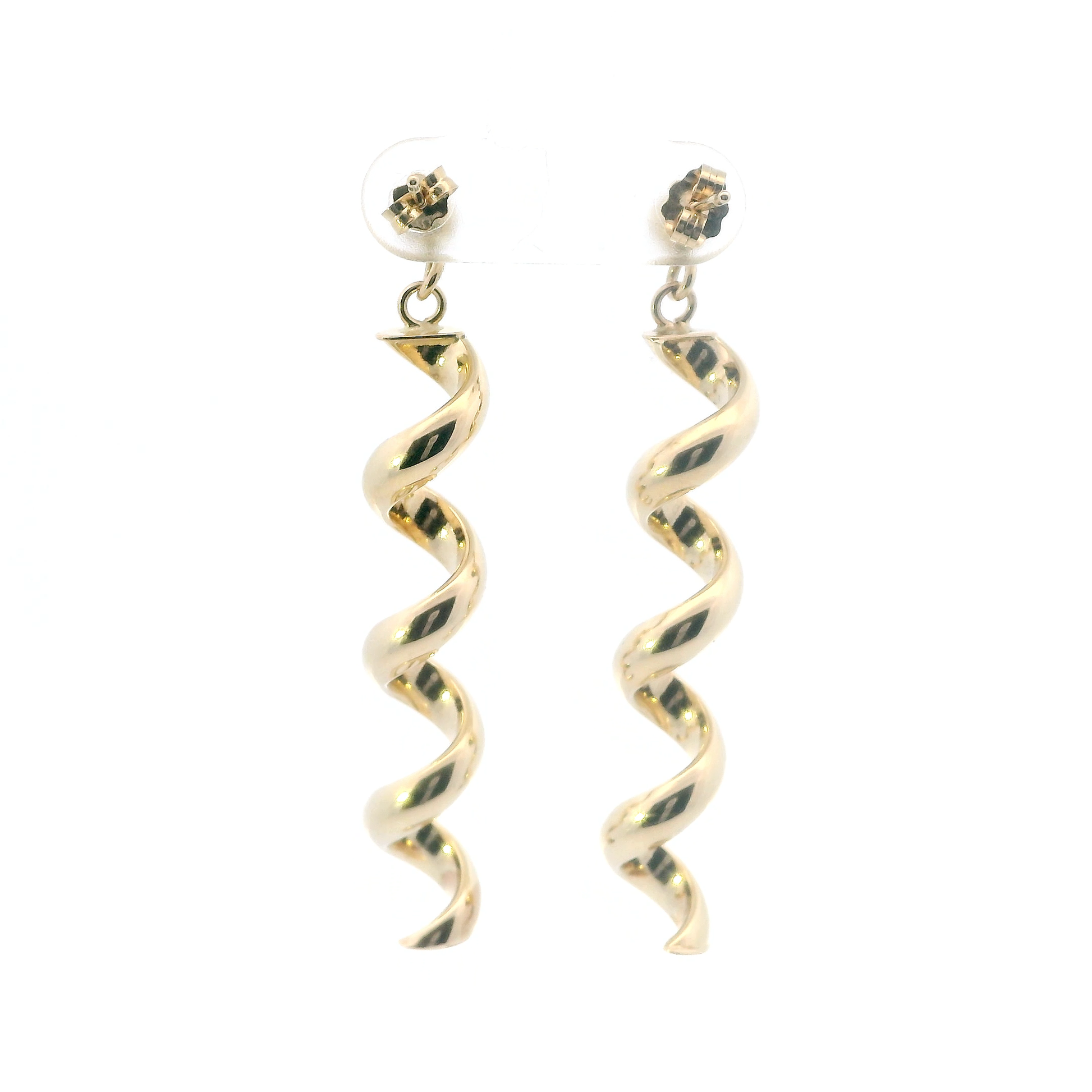 14K Yellow Gold Hollow Spiral Dangle Earrings