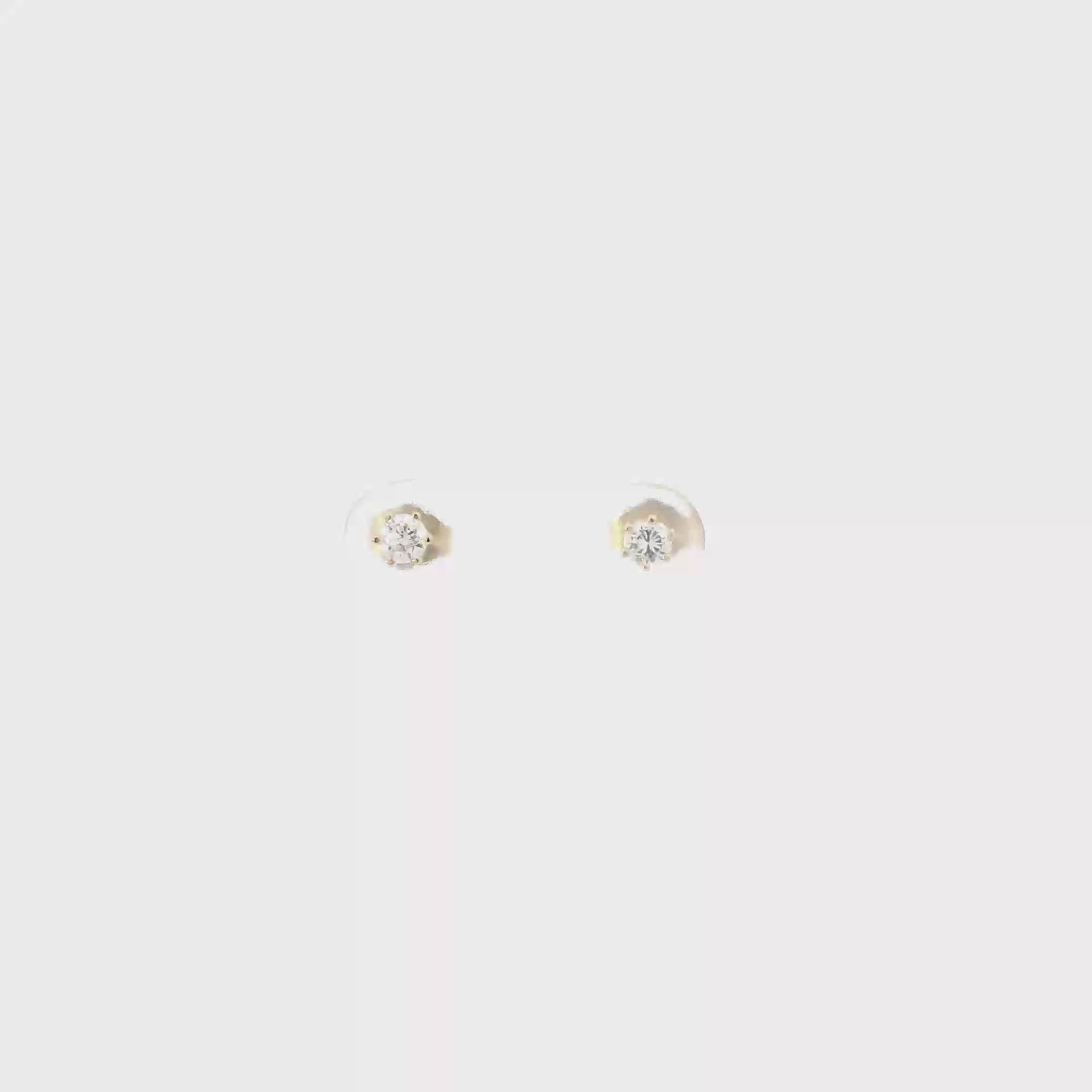 This is a beautiful gold solitaire diamond earring set that is in clean preowned condition. It has been authenticated and polished by our in-house goldsmith.