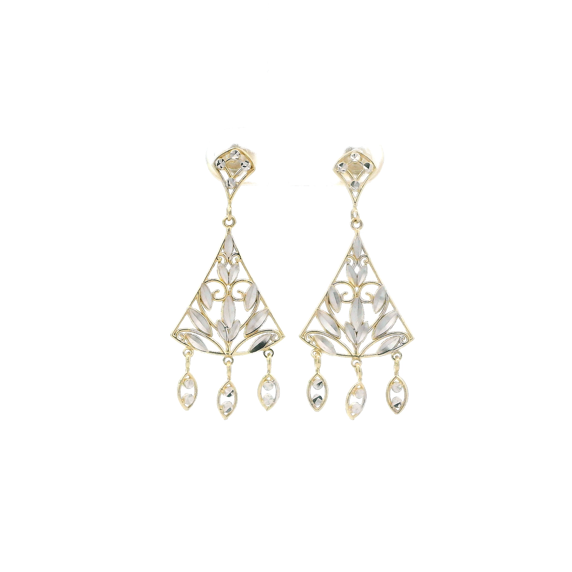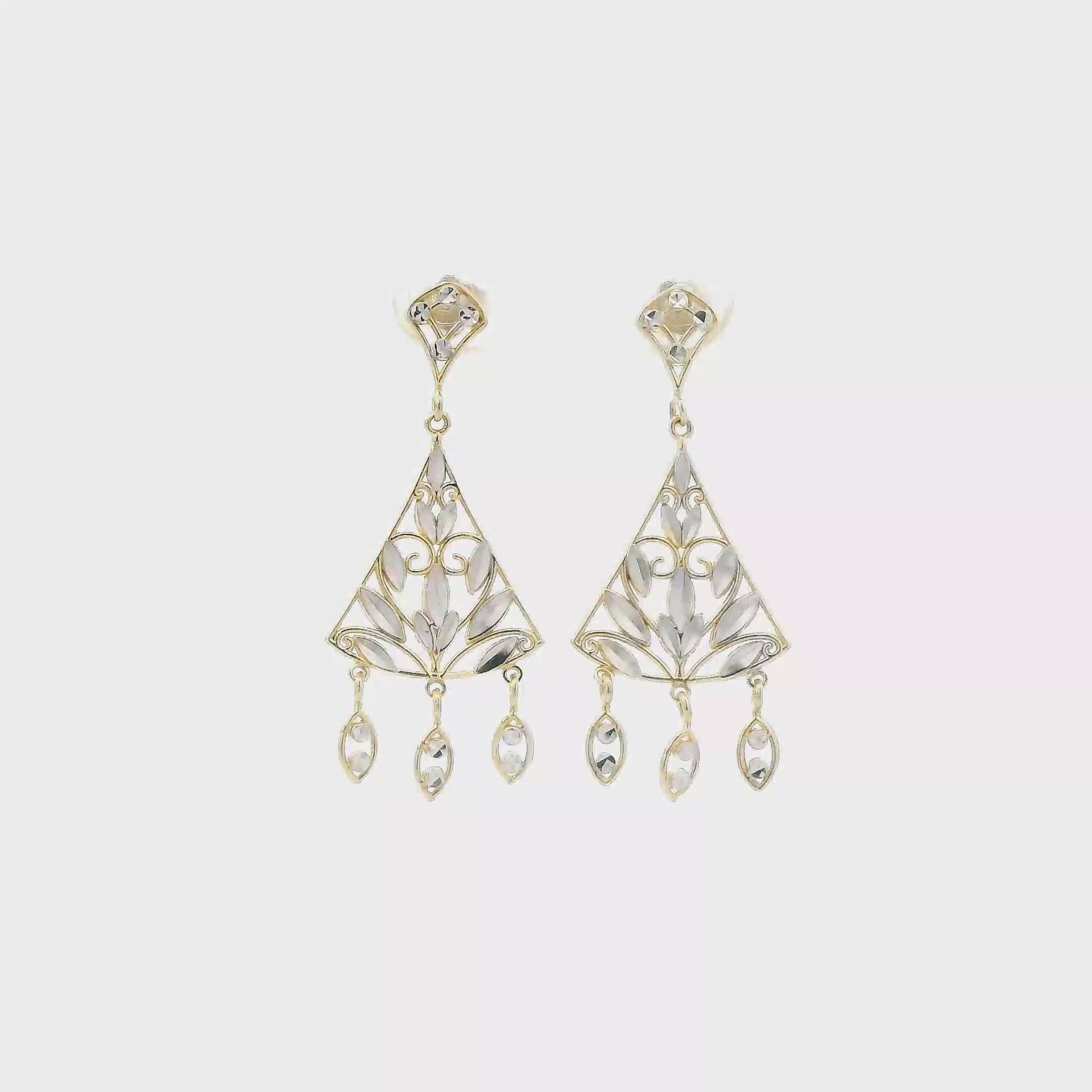14K Yellow & White Gold Filigree Triangle Dangle Earrings