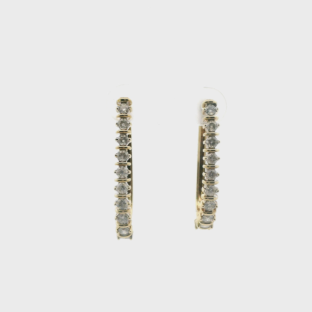 14K Yellow Gold Diamond Oblong Hoop Earrings -0.15ct