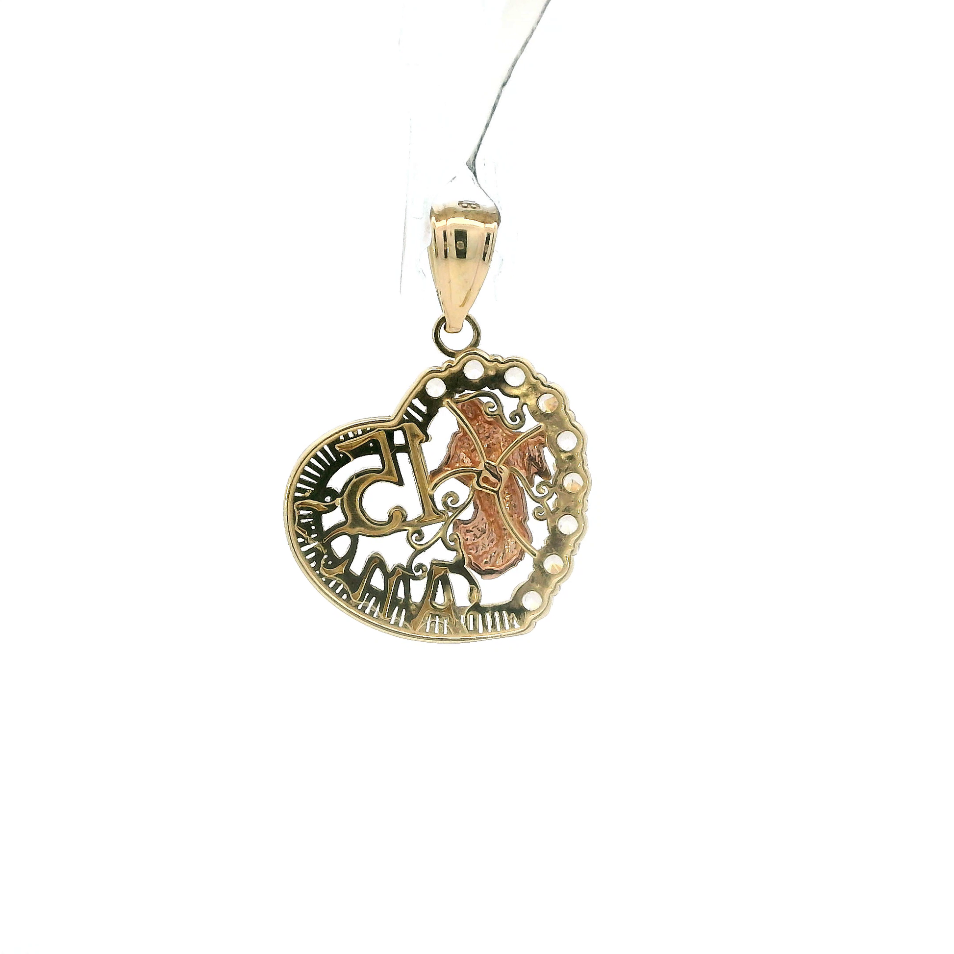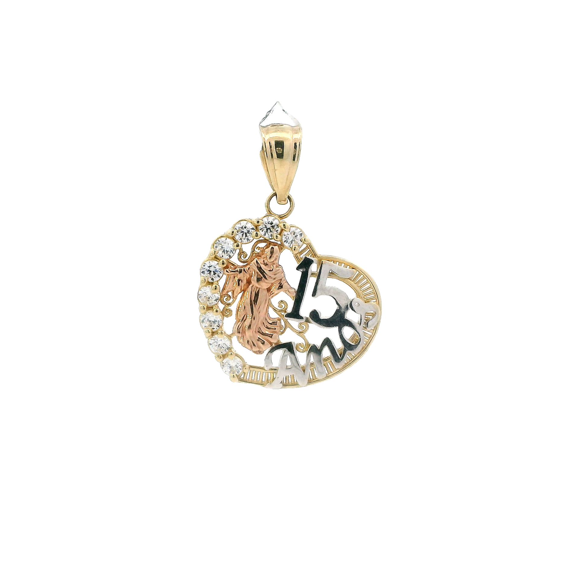 10K Tri Color Gold "15 Anos" Heart Pendant