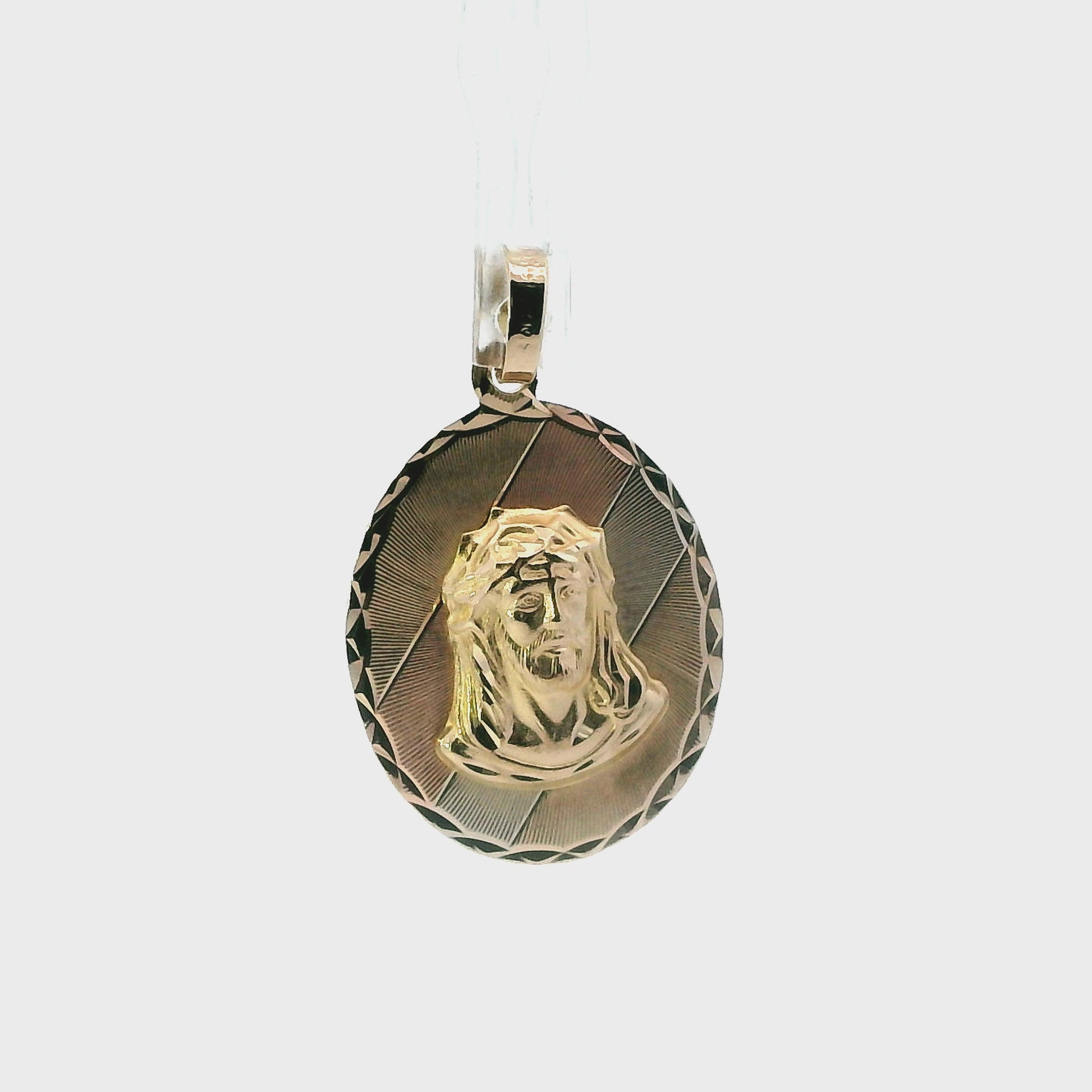 10K Tri Color Oval Jesus Christ Face Pendant