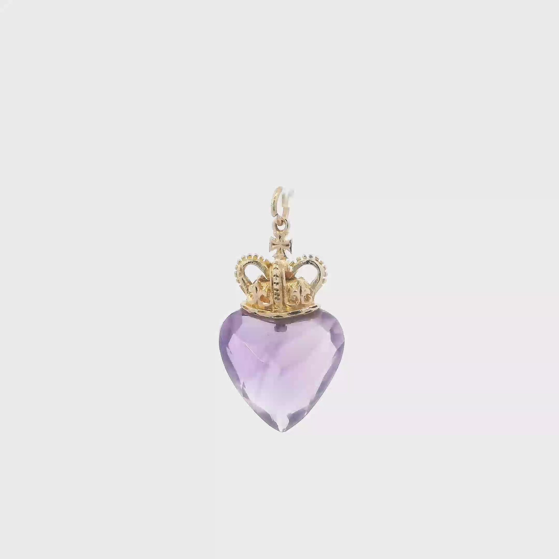 10K Yellow Gold Amethyst Heart & Crown Pendant