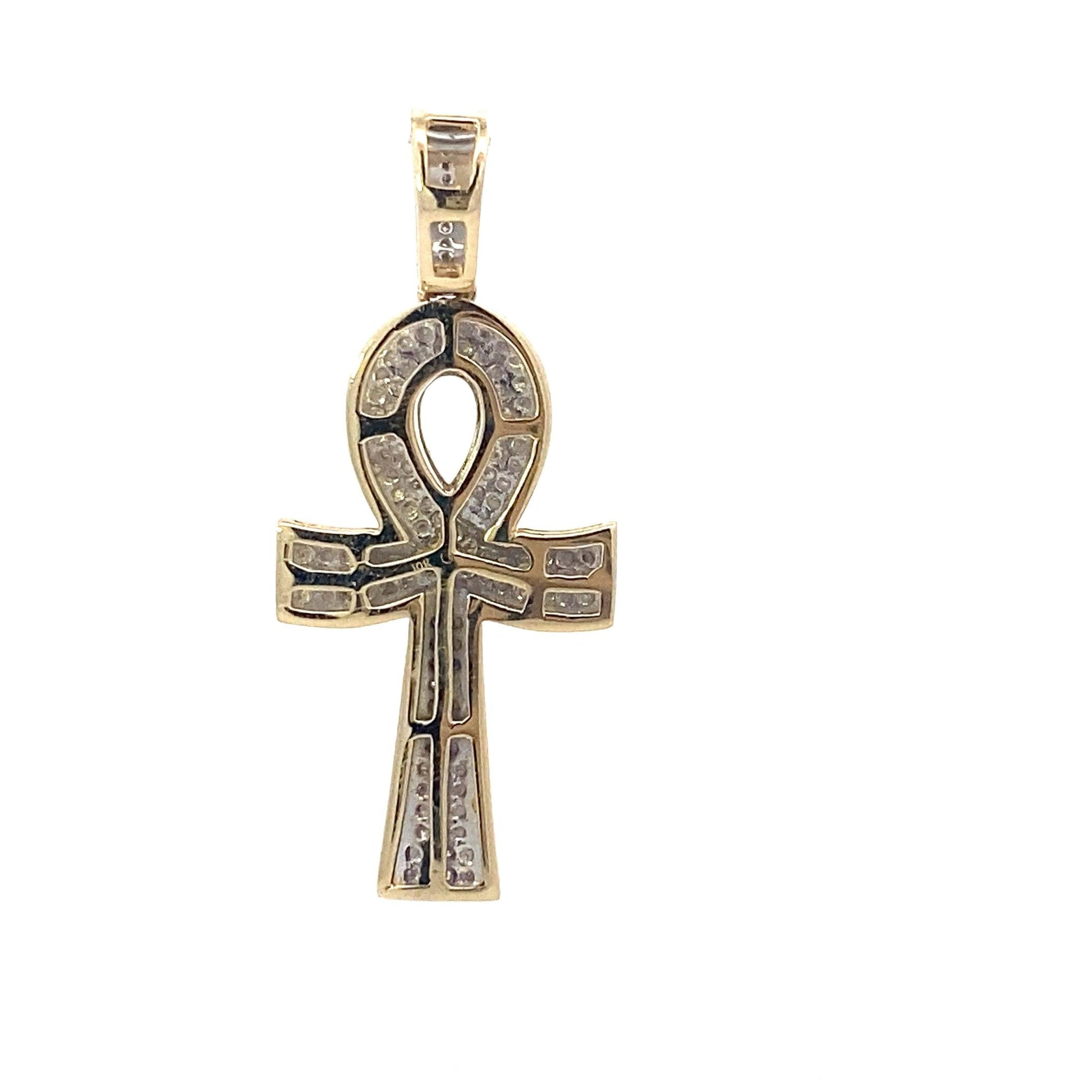 10K Yellow Gold Diamond Ankh Cross Pendant - 0.23ct