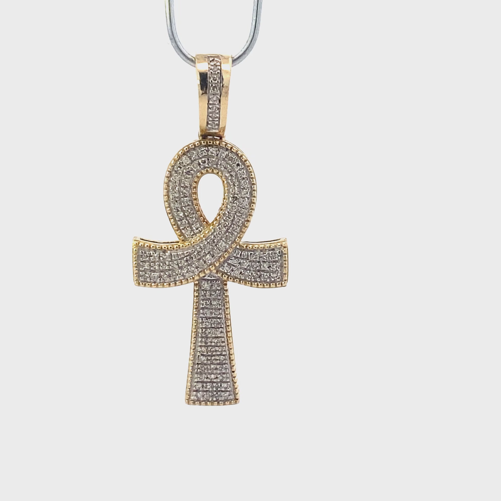 This is a beautiful diamond ankh cross pendant that is in clean preowned condition. It has been authenticated and polished by our in-house goldsmith / gemologist.