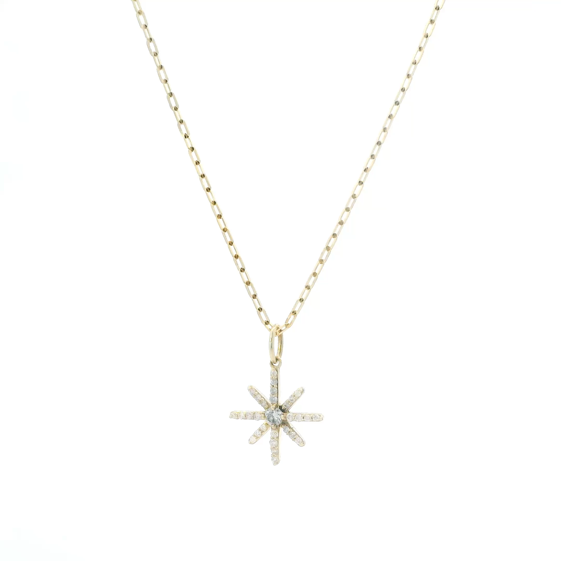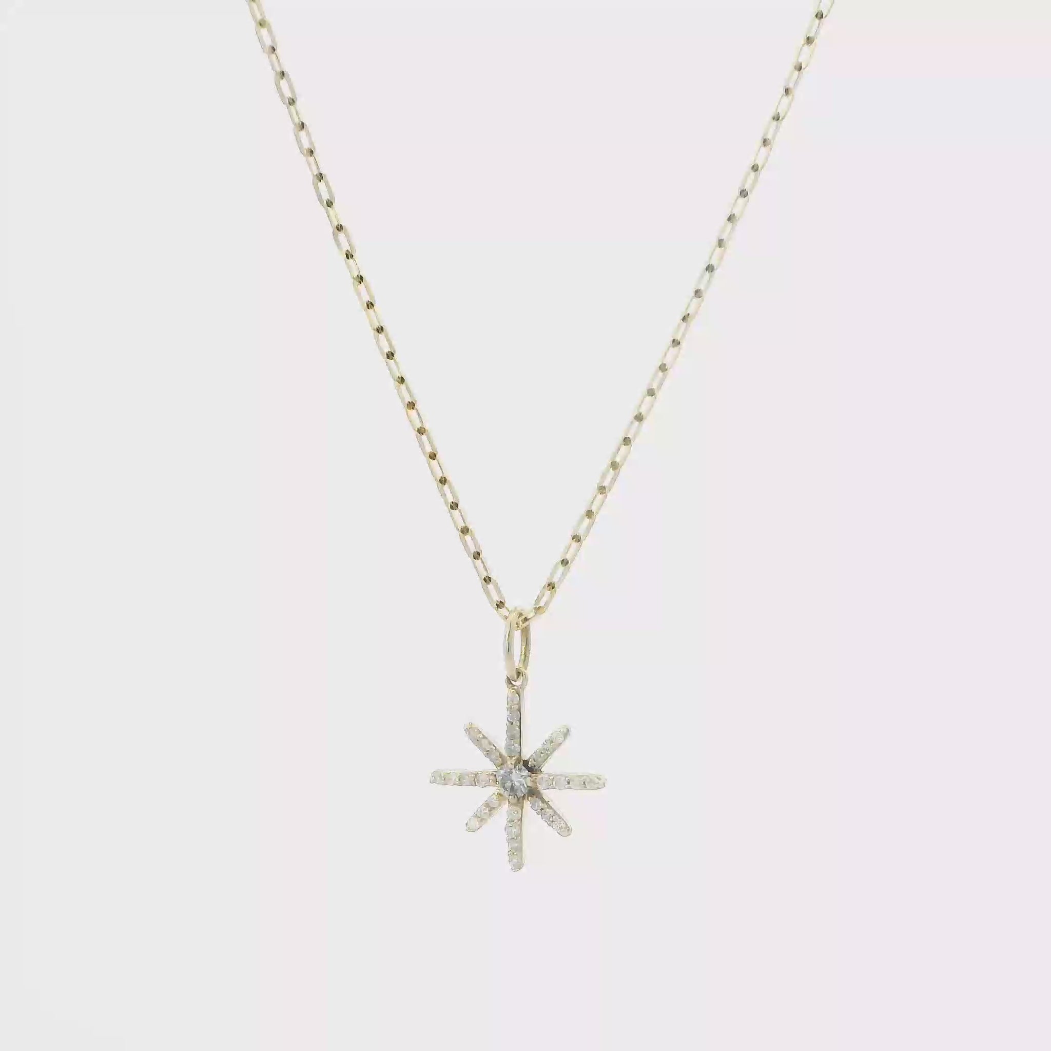 This is a beautiful gold & diamonds snowflake pendant & cable chain that is in clean preowned condition. It has been authenticated and polished by our in-house goldsmith / gemologist.
