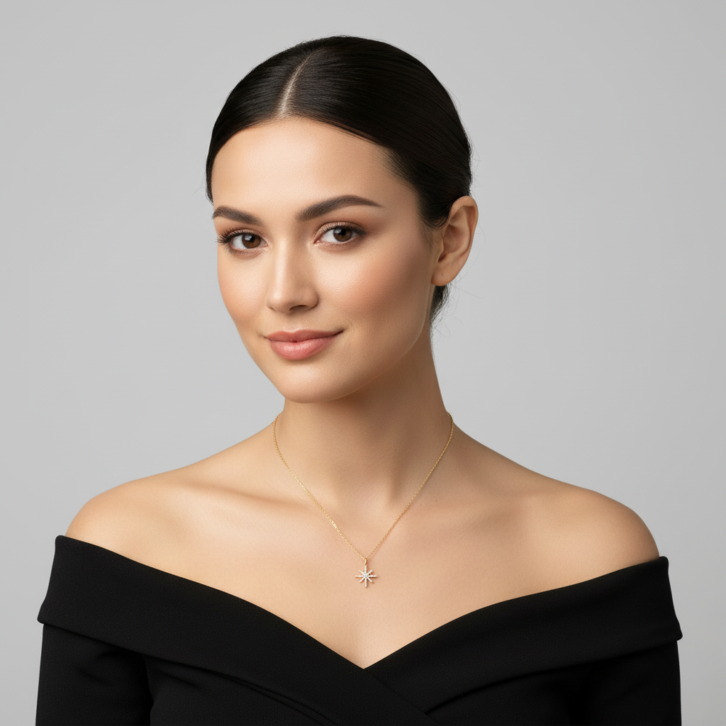 10K Yellow Gold Diamonds Snowflake Pendant & 16-20" Cable Chain - 0.17ct