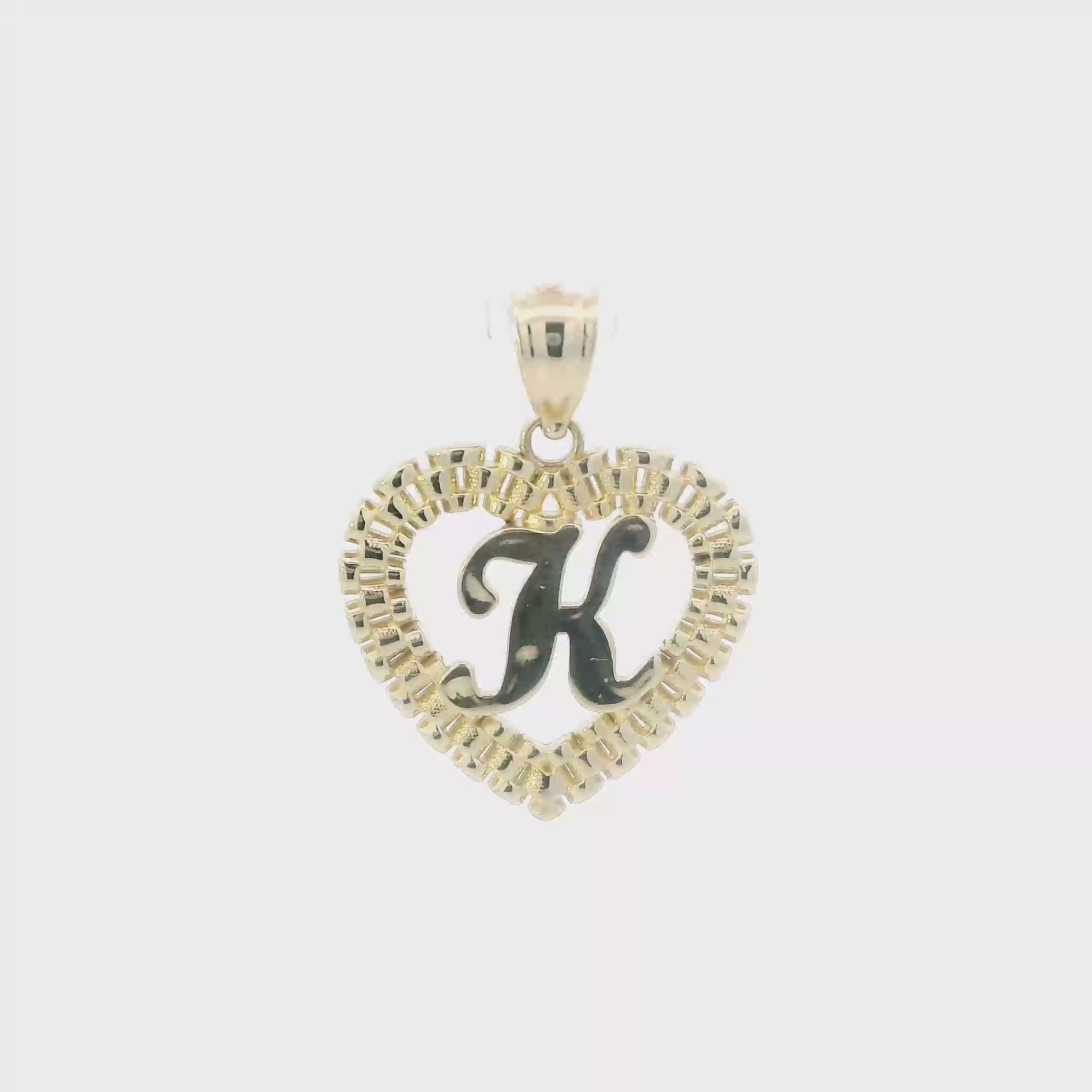 10K Yellow Gold Letter "K" Rolex Heart Pendant