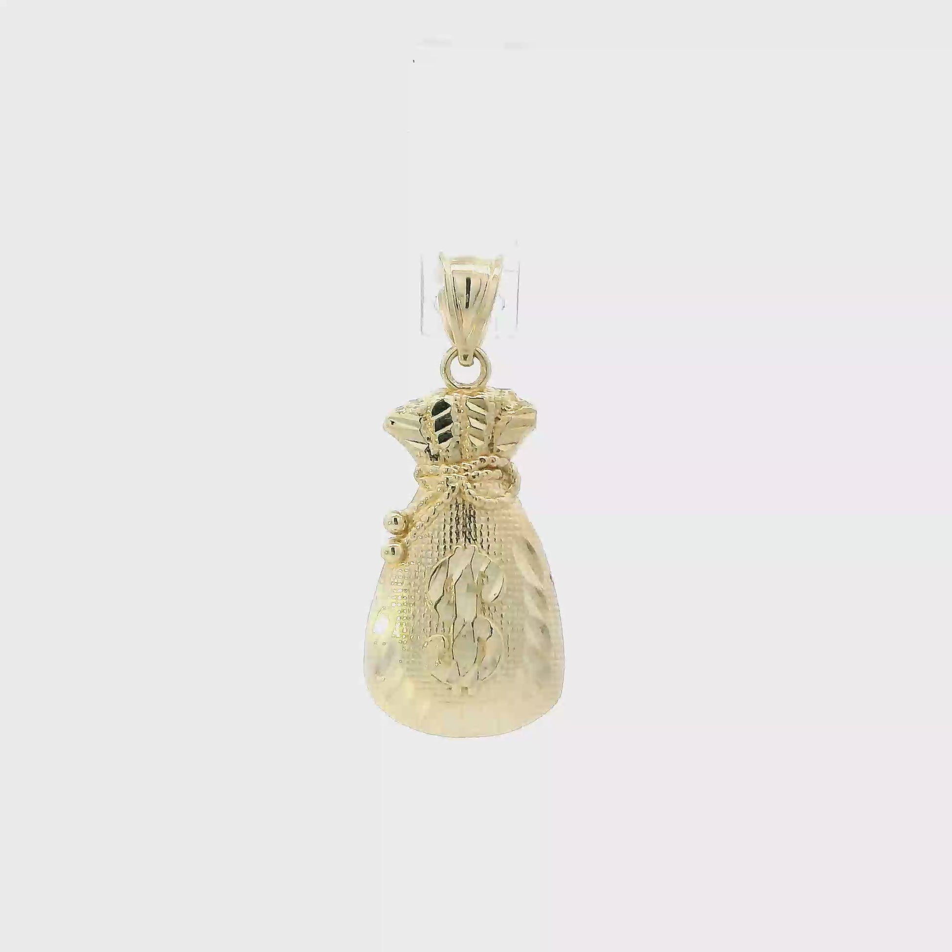 This is a beautiful gold money bag pendant that is in clean preowned condition. It has been authenticated and polished by our in-house goldsmith / gemologist.