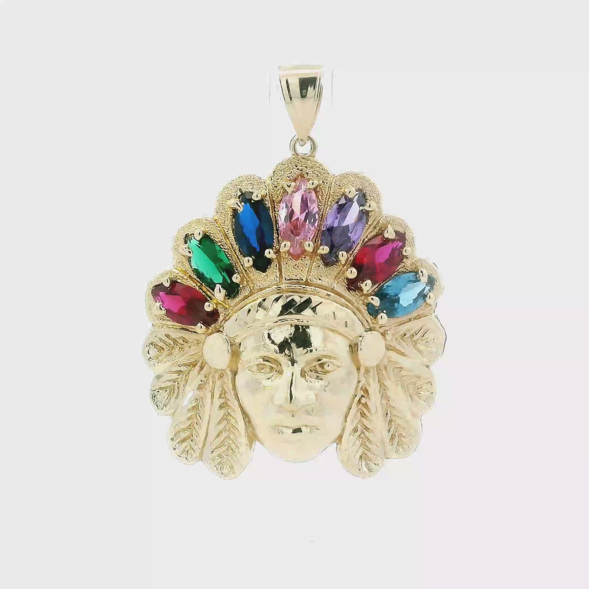 10K Yellow Gold Muti Color Stone Native American Head Pendant