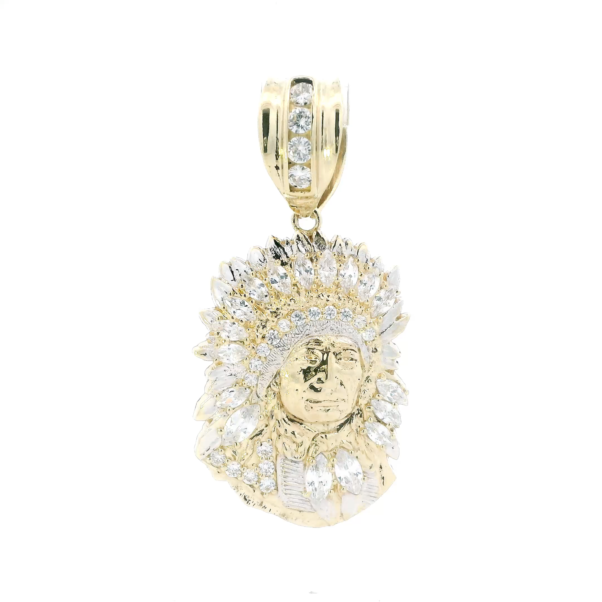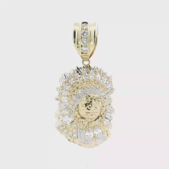 This is a beautiful gold native American head pendant that is in clean preowned condition. It has been authenticated and polished by our in-house goldsmith / gemologist.