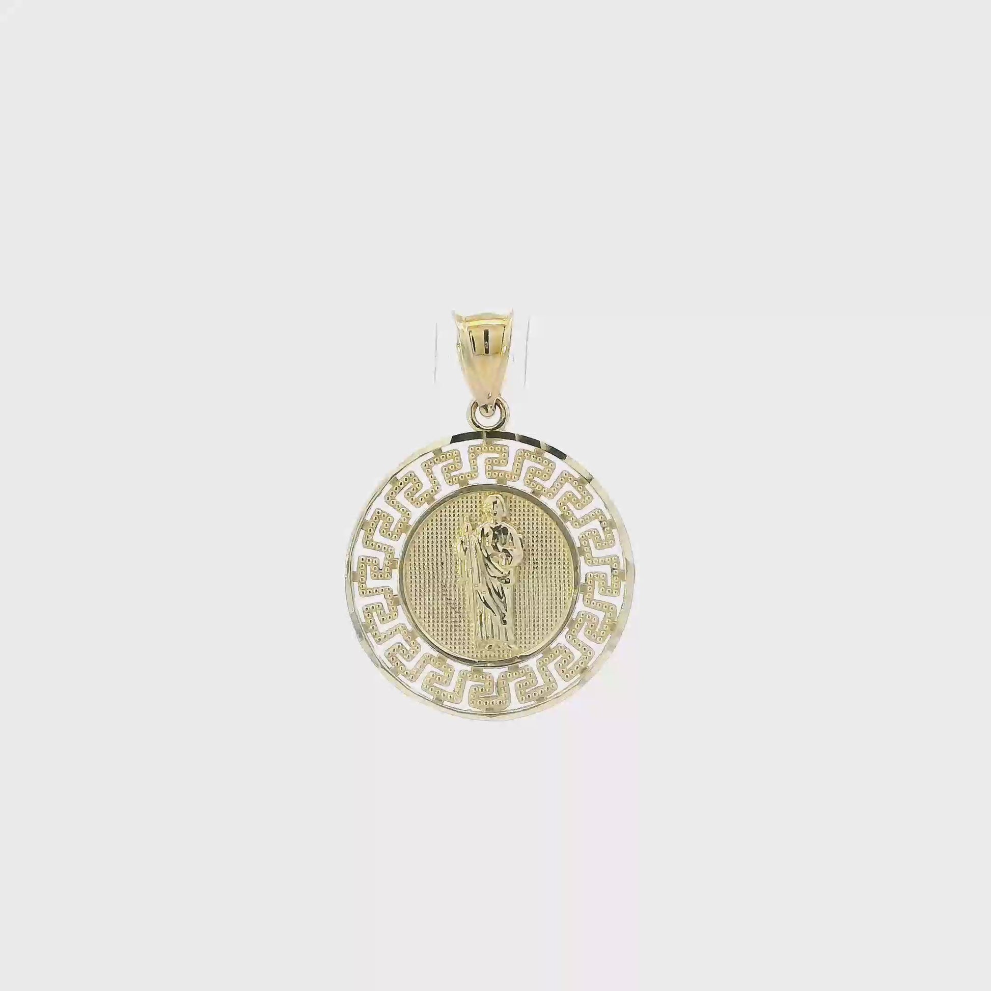 10K Yellow Gold Round Greek Design Religious Pendant