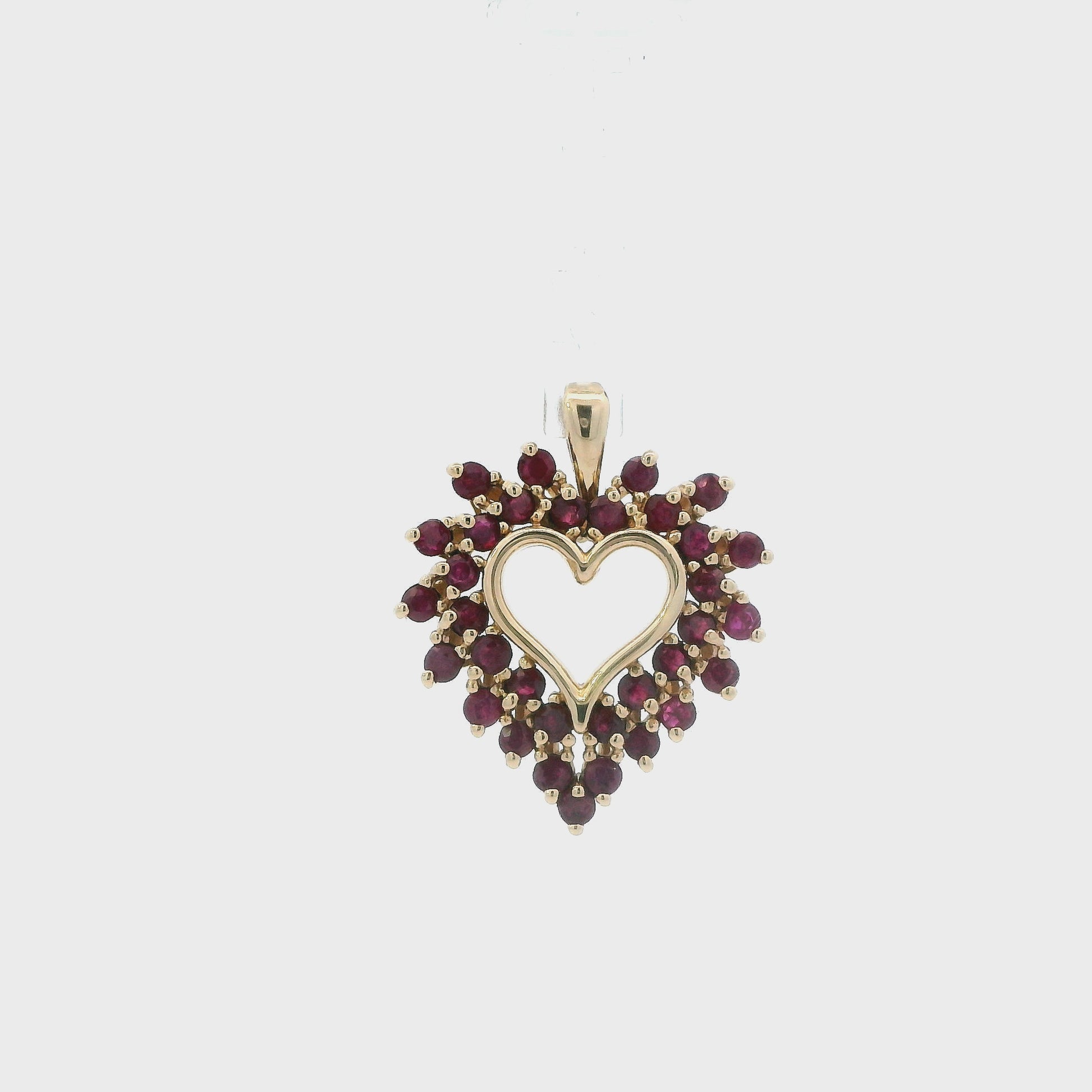 This is a beautiful gold ruby heart pendant that is in clean preowned condition. It has been authenticated and polished by our in-house goldsmith / gemologist.