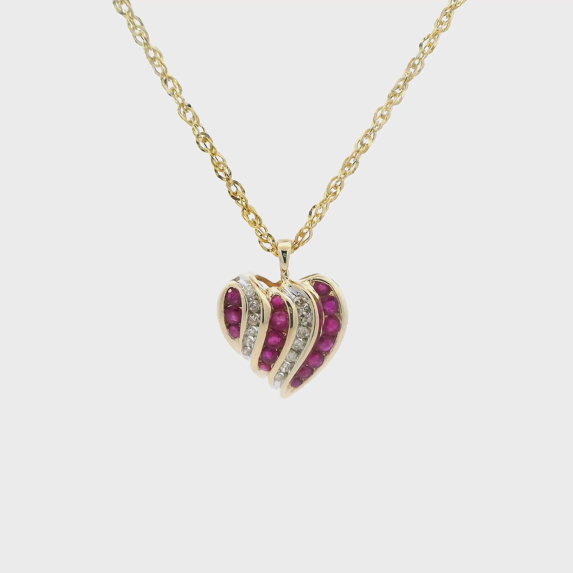 10K Yellow Gold Ruby Heart Pendant & 18" Rope Chain