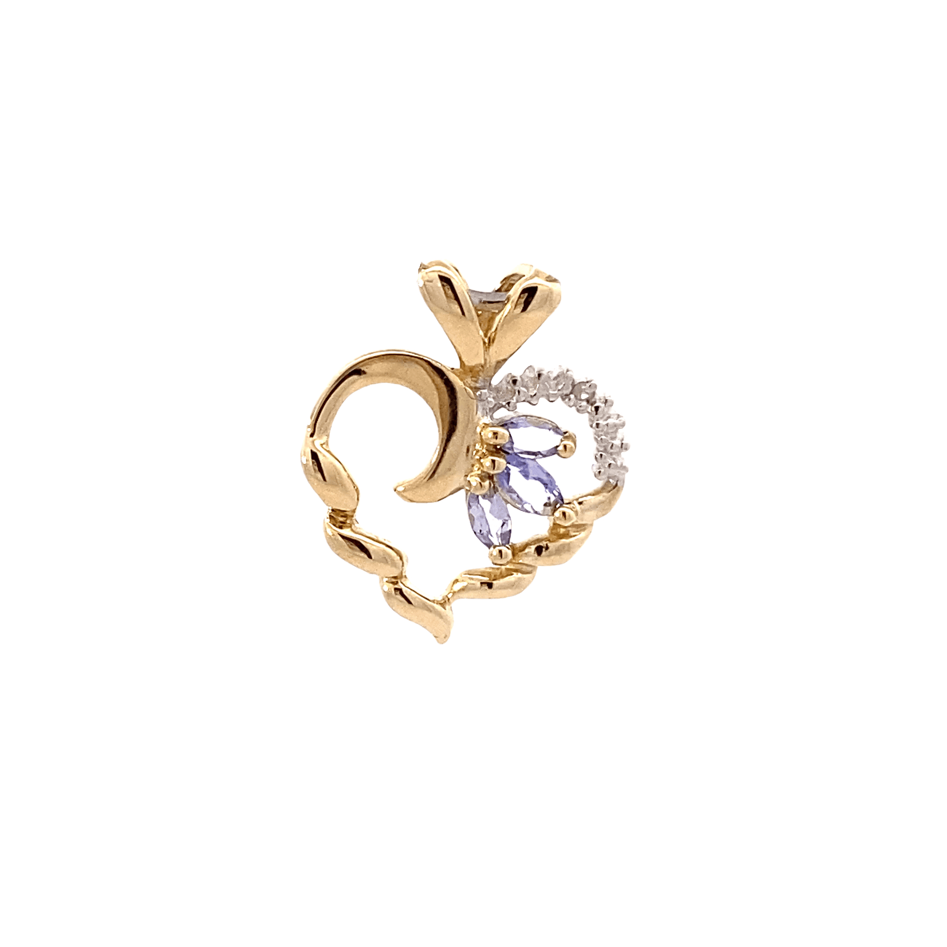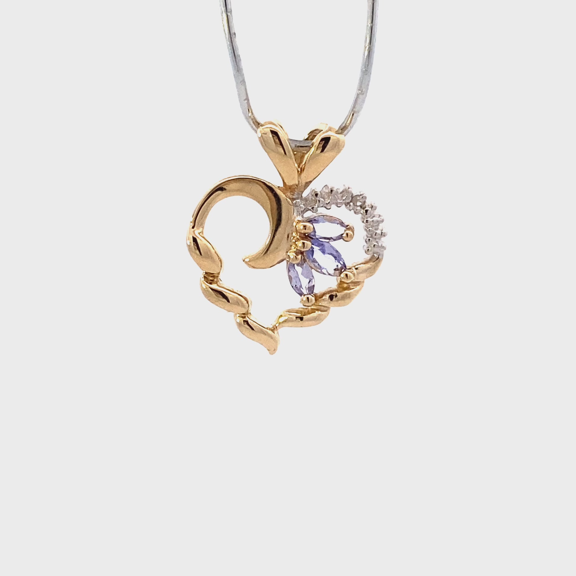 10K Yellow Gold Tanzanite & Diamond Heart Pendant - 0.006ct