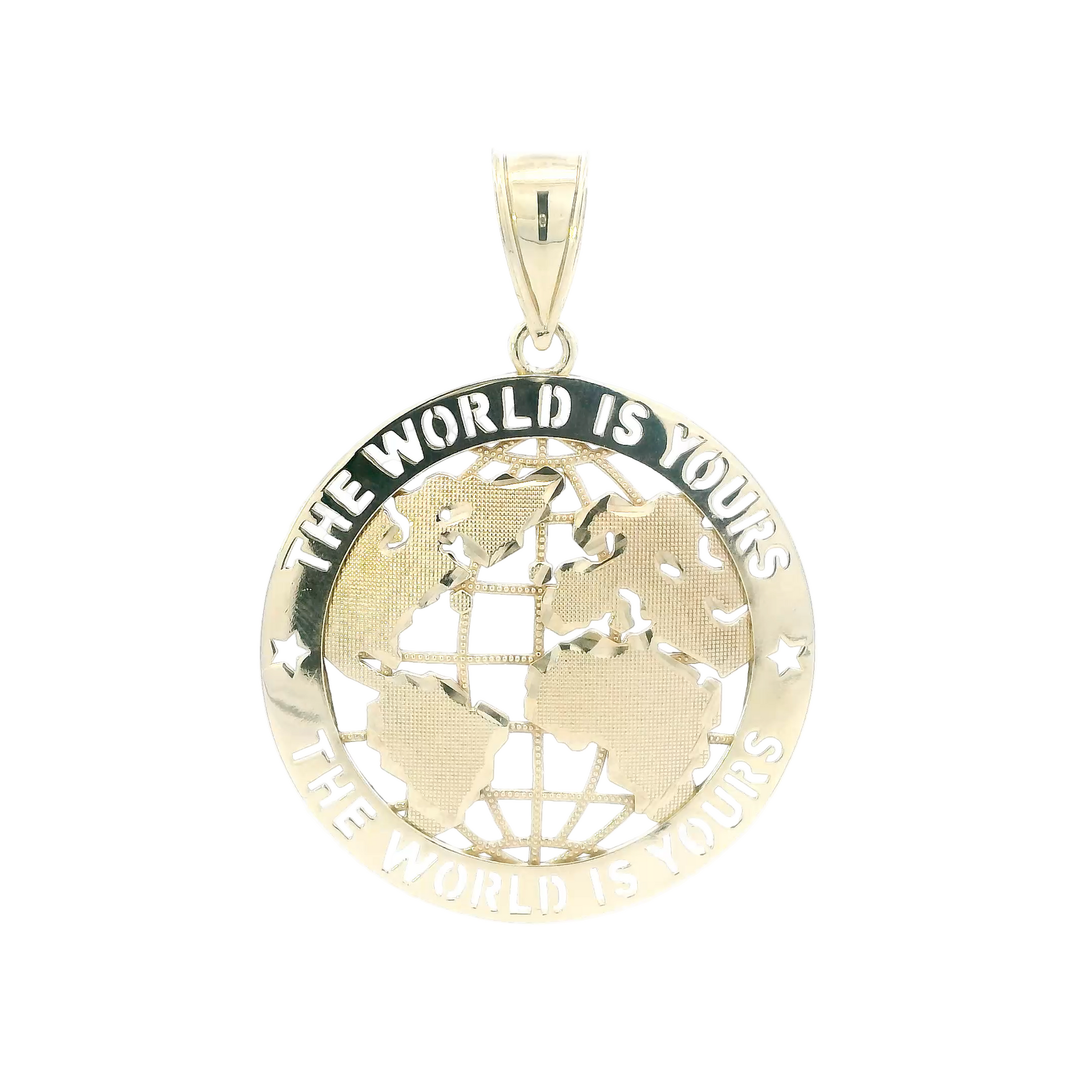 10K Yellow Gold "The World Is Yours" Globe Pendant
