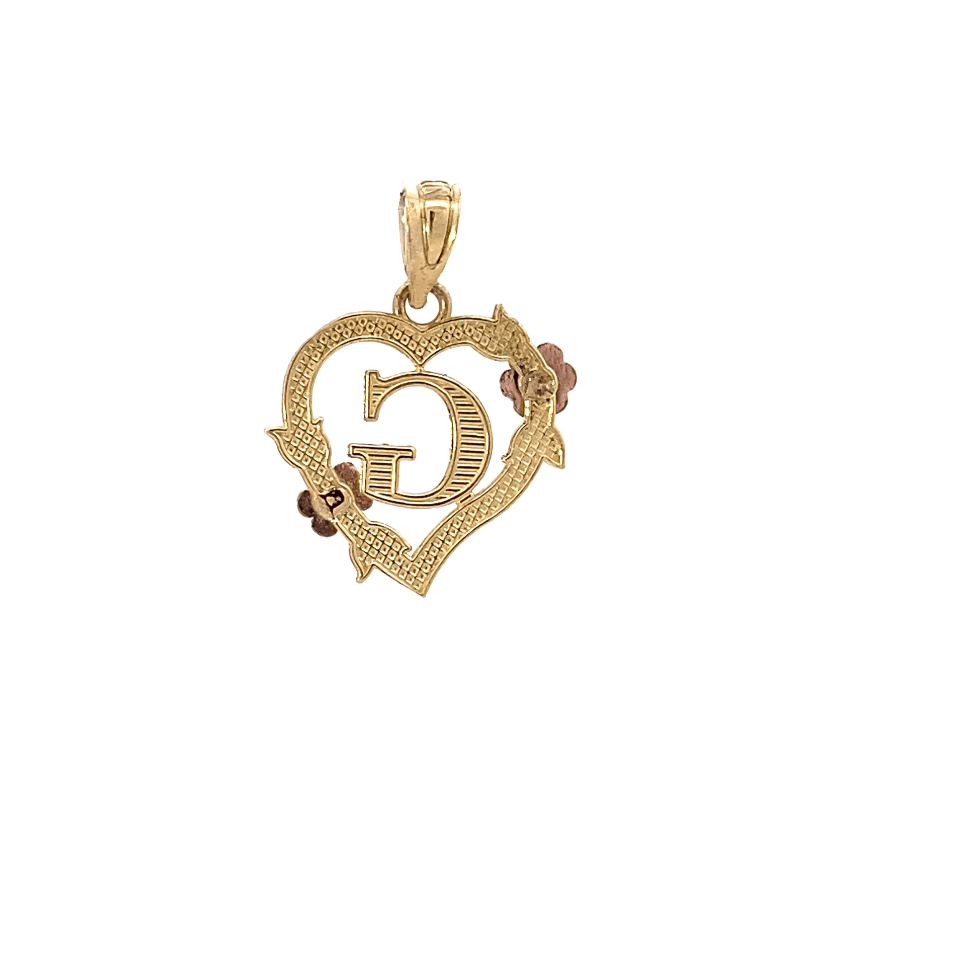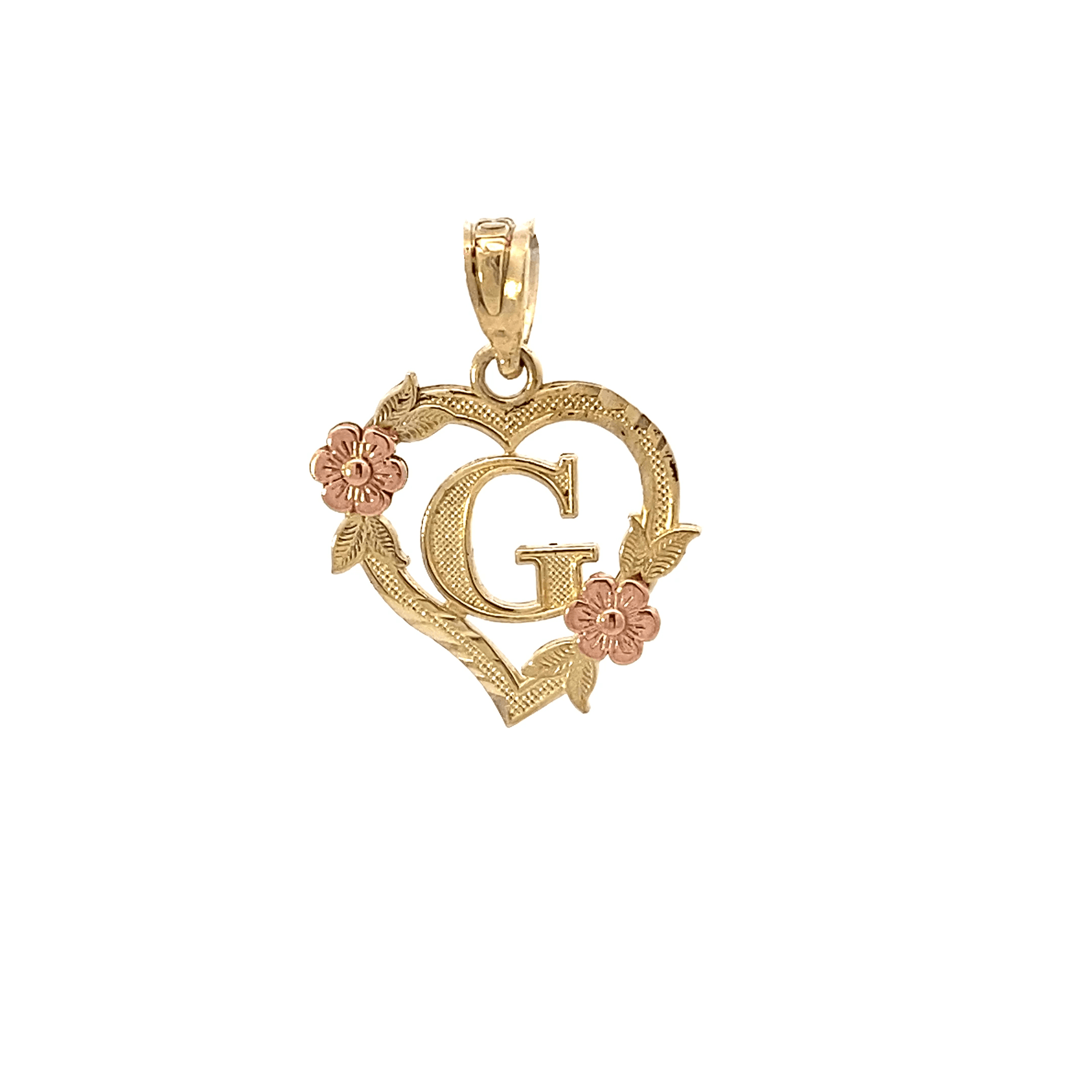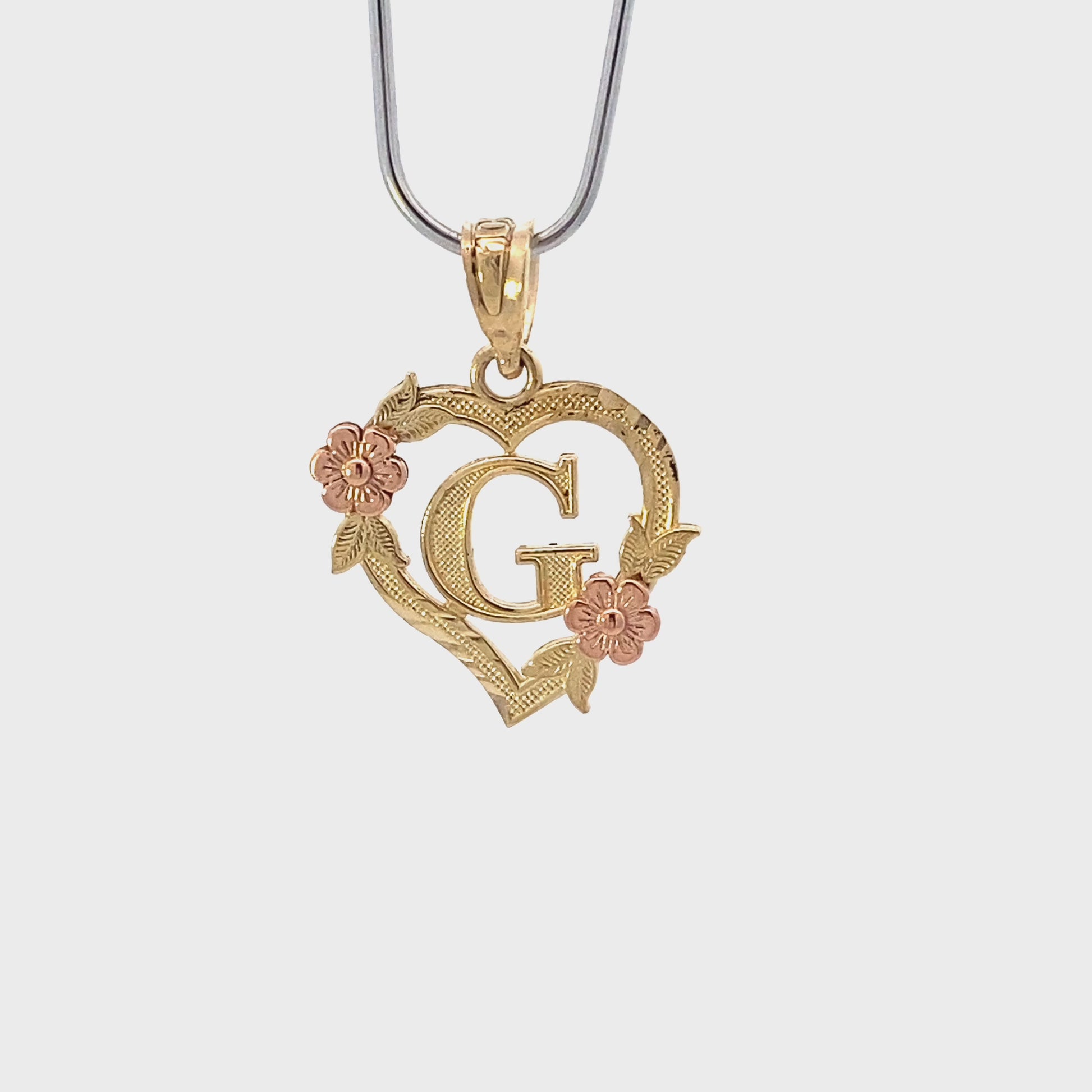 10K Yellow & Rose Gold Letter "G" Heart Pendant