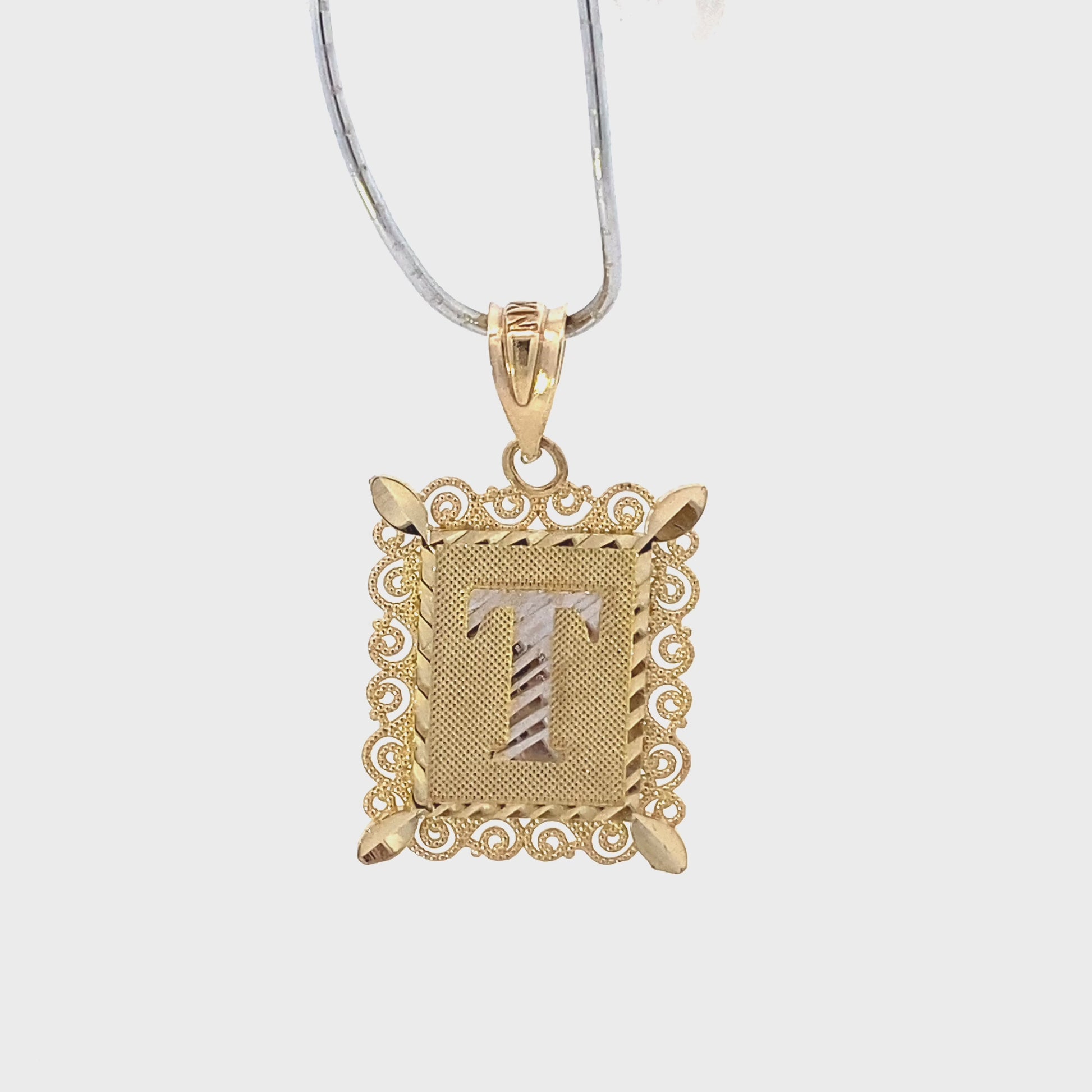 10K Yellow & White Gold 19x15mm Letter "T" Pendant