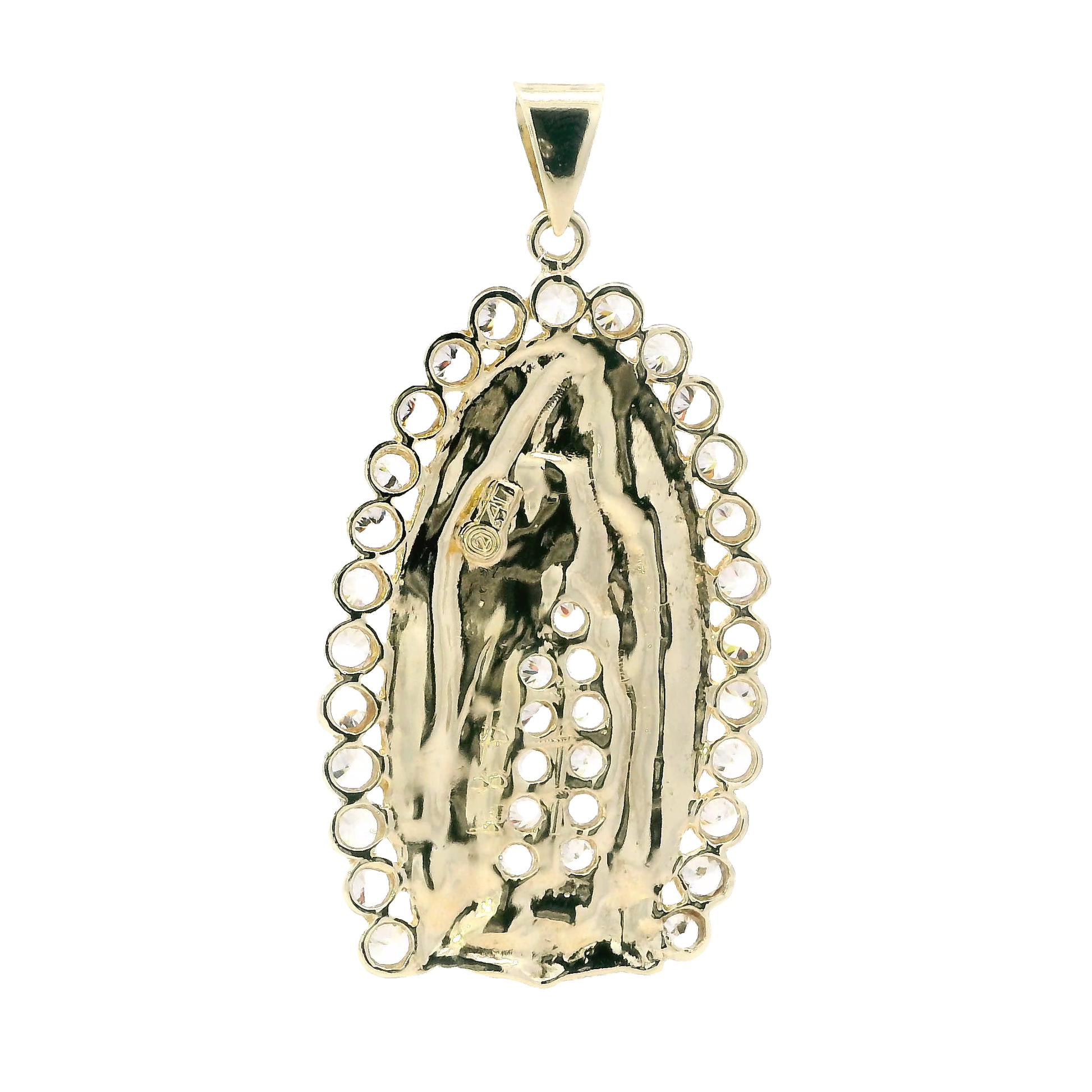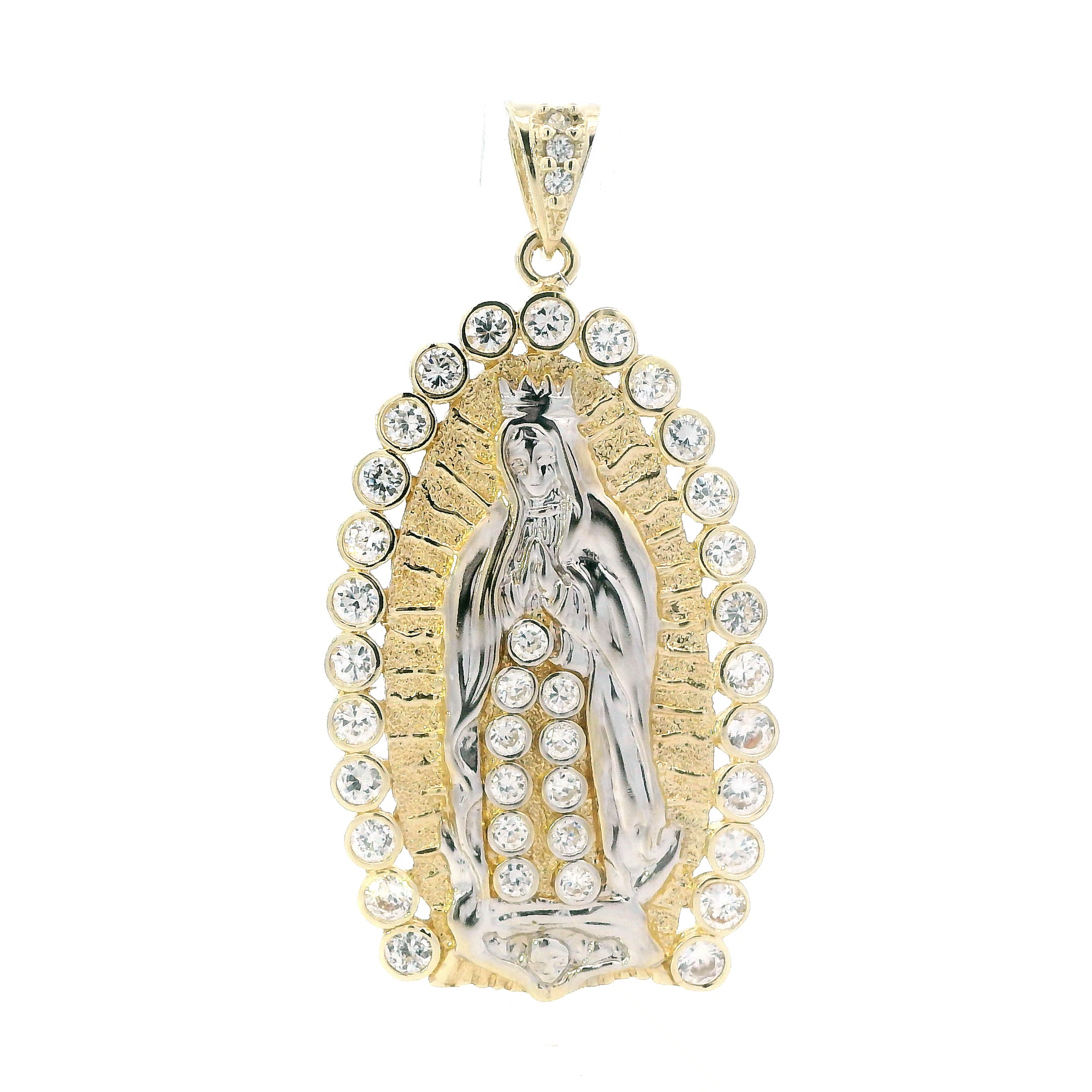 10K Yellow & White Gold CZ Virgin Mary Pendant