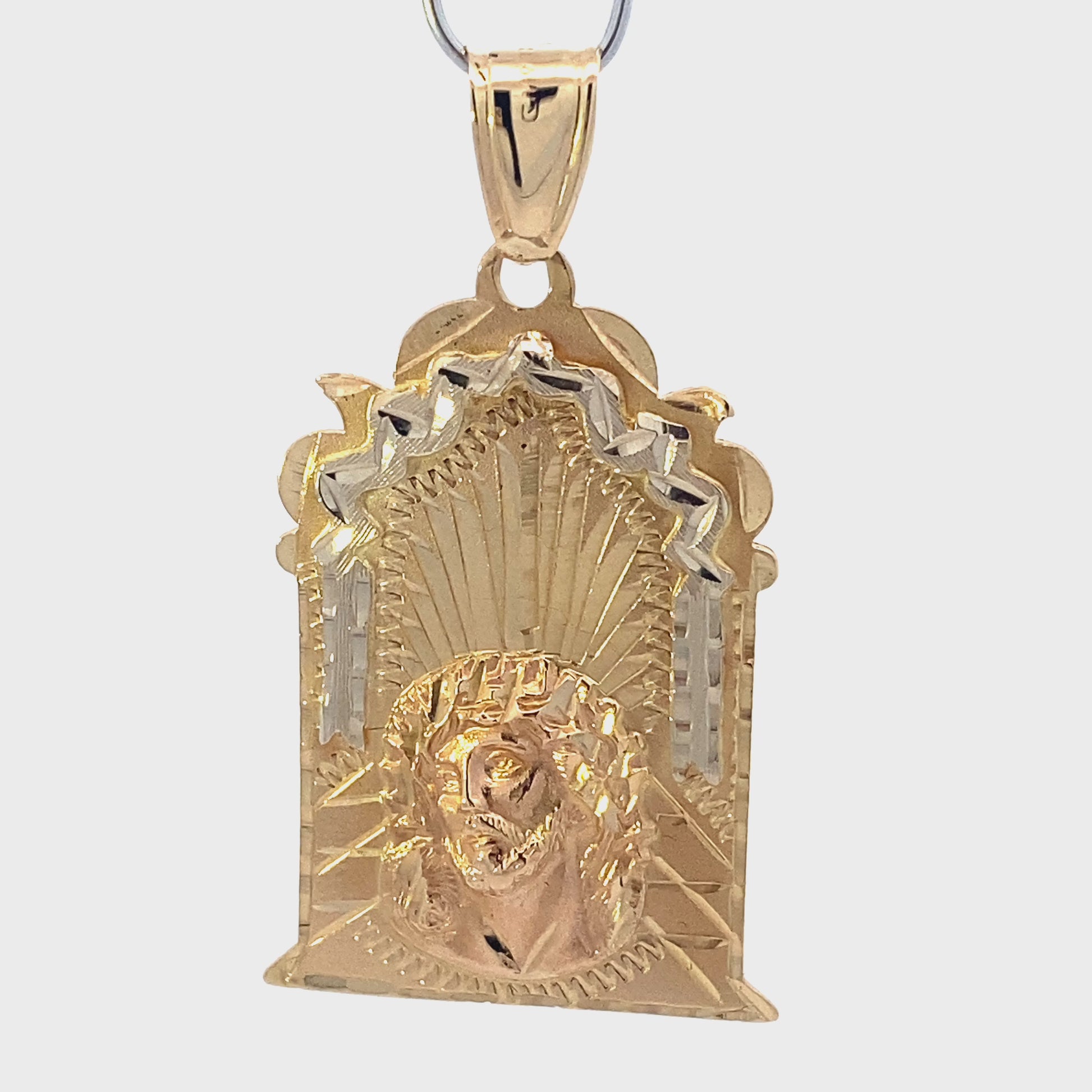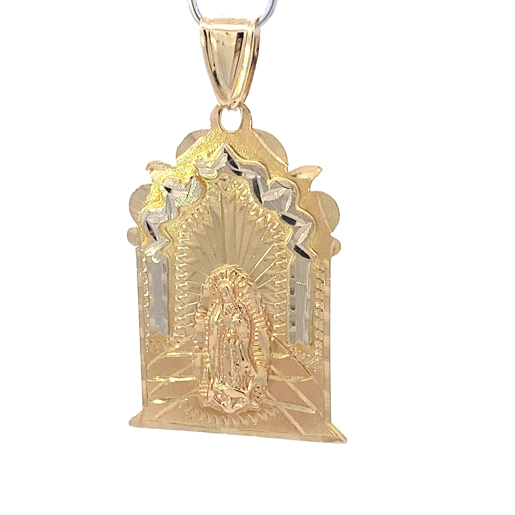 14K Tri-Color Gold 35x24mm Double Sided Religious Pendant