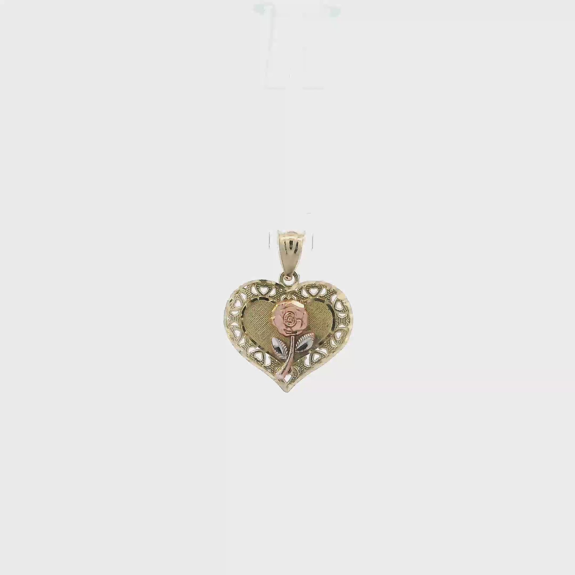 14K Tri Color Gold Rose Heart Pendant