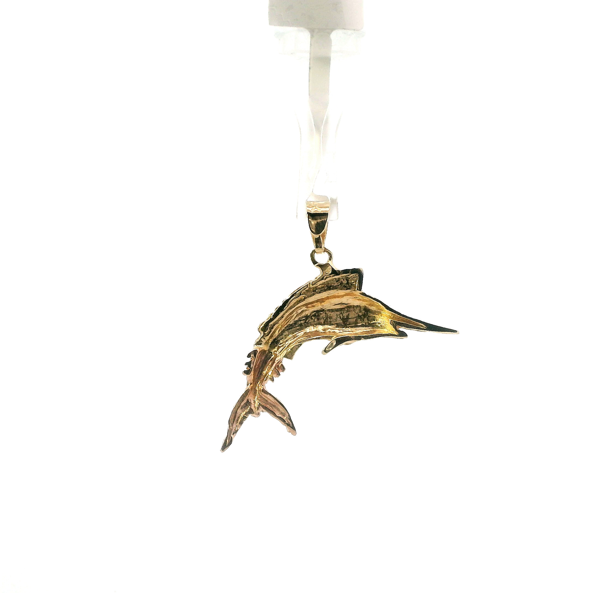 This is a beautiful gold swordfish pendant that is in clean preowned condition. It has been authenticated and polished by our in-house goldsmith.