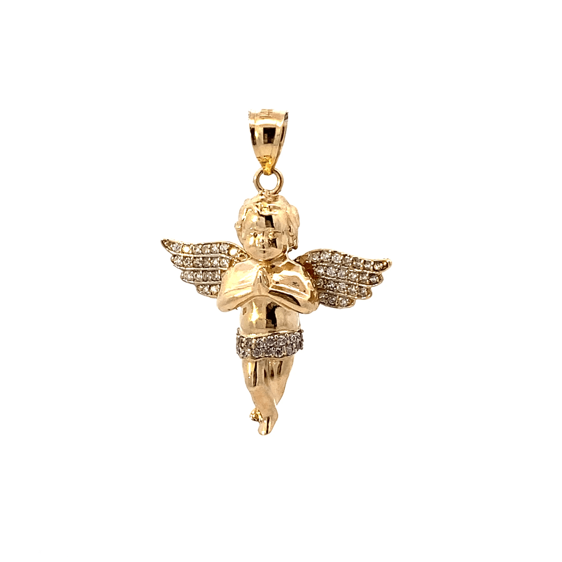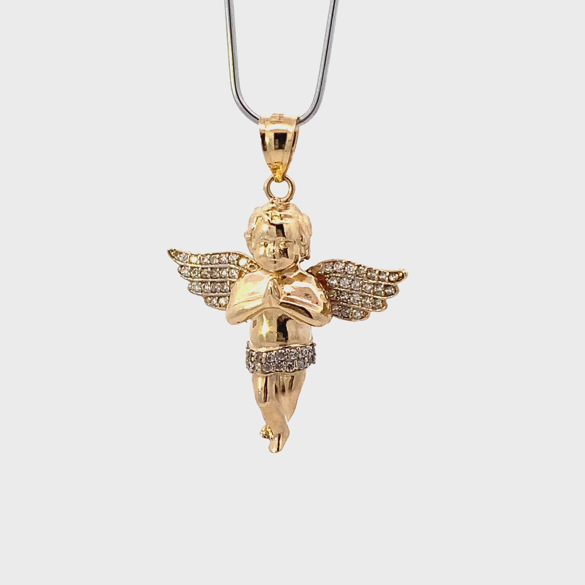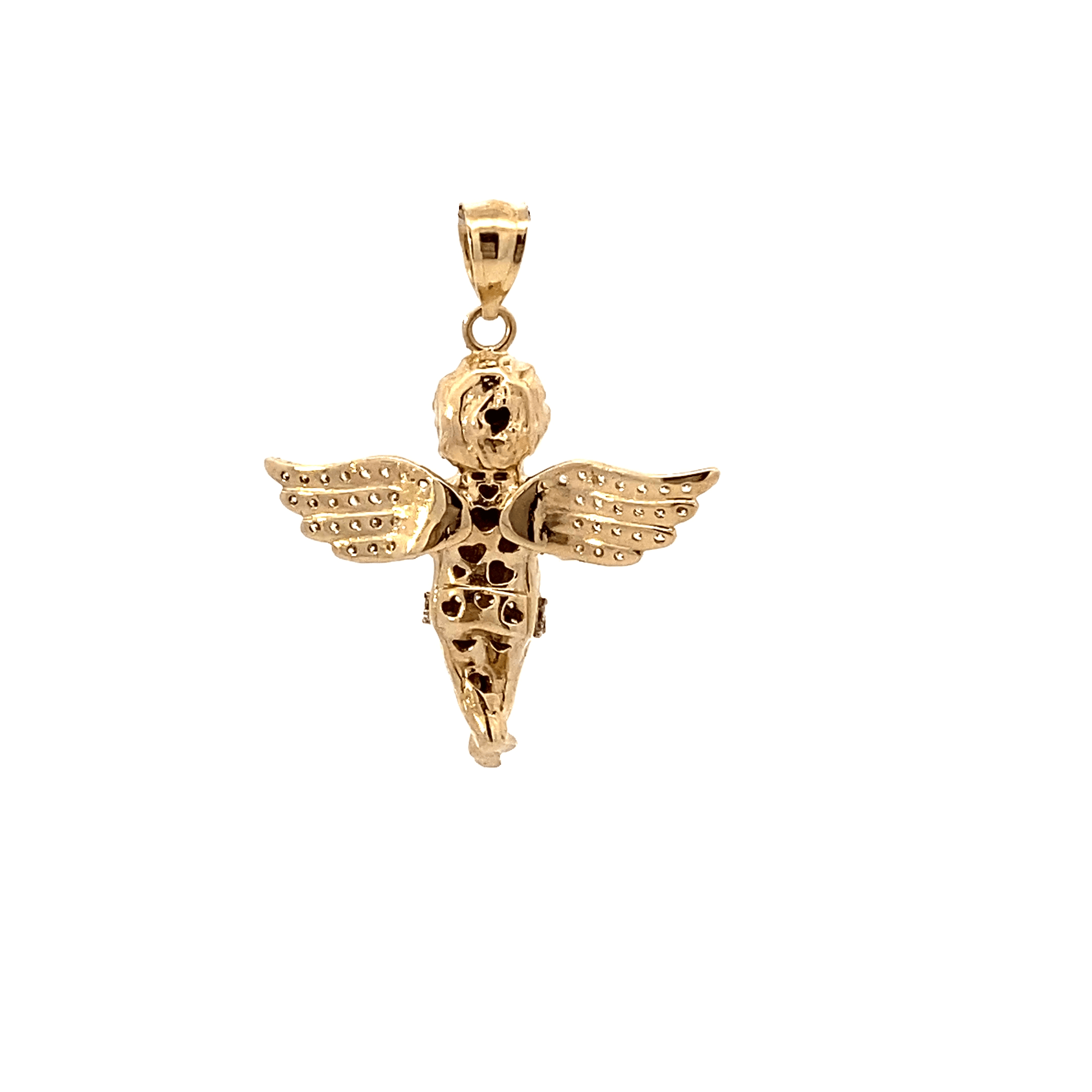 This is a beautiful gold angel pendant that is in clean condition. It has been authenticated and polished by our in-house goldsmith / gemologist.