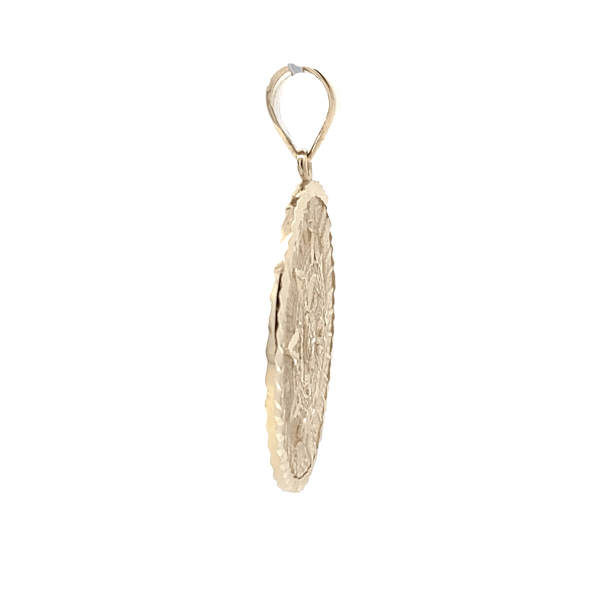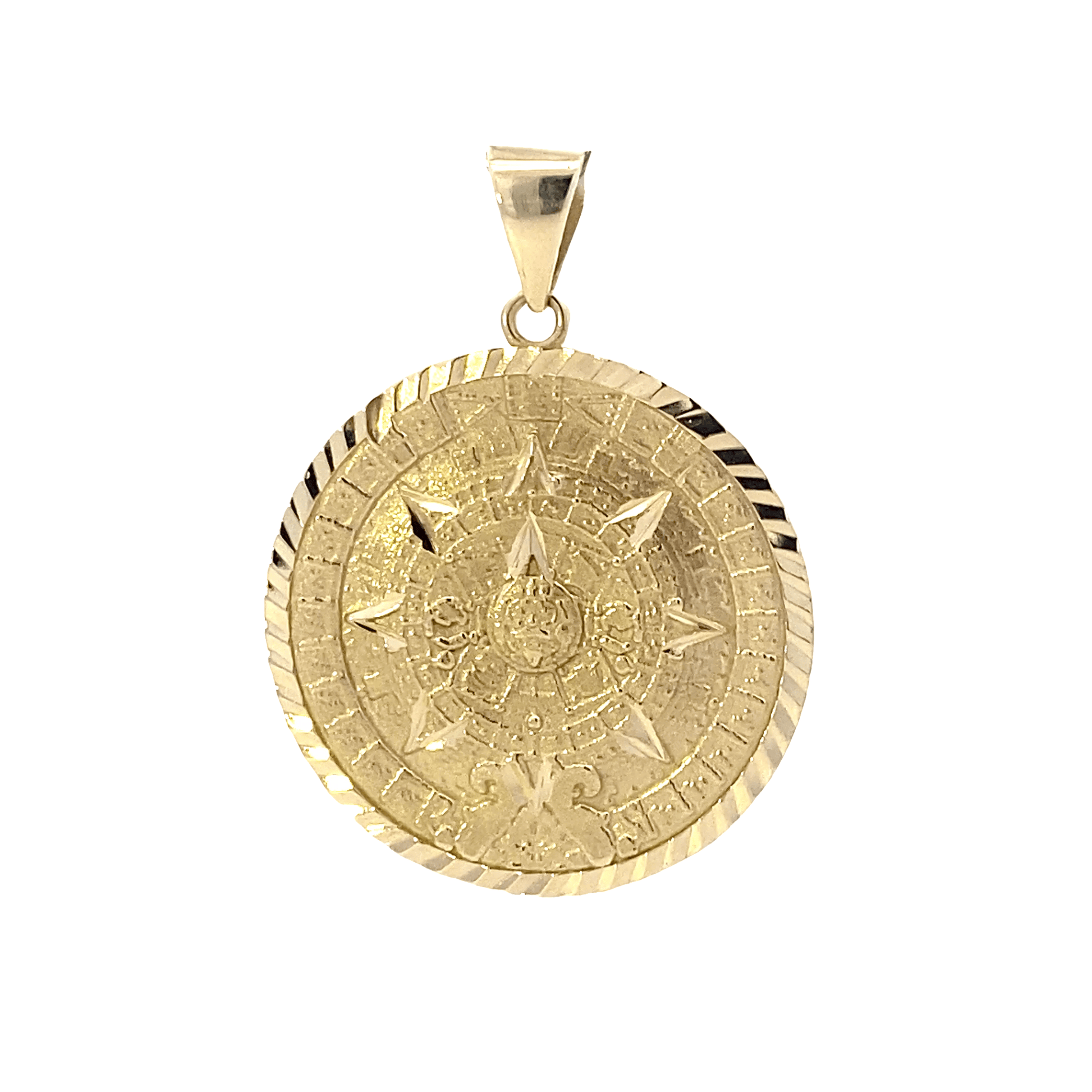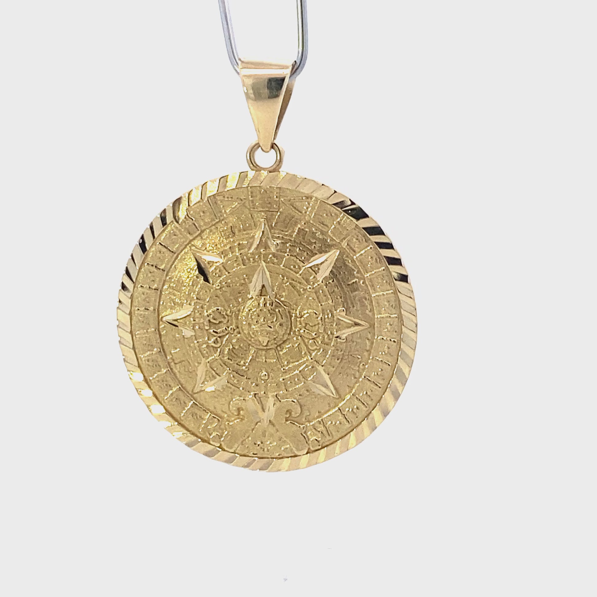 14K Yellow Gold Aztec Mayan Sun Calendar Pendant