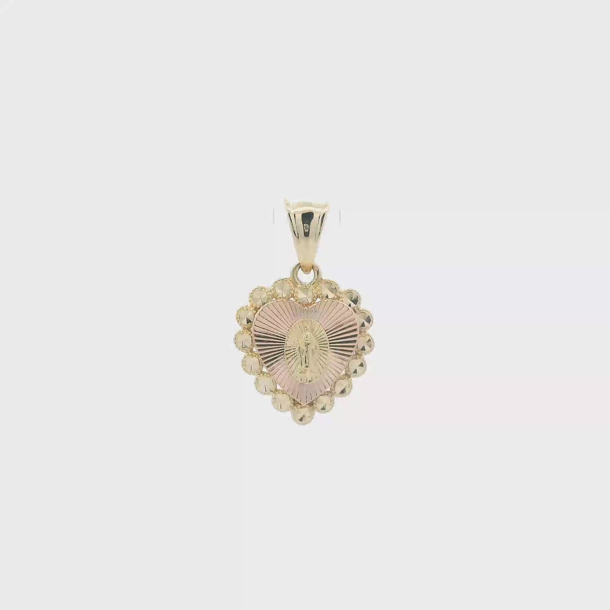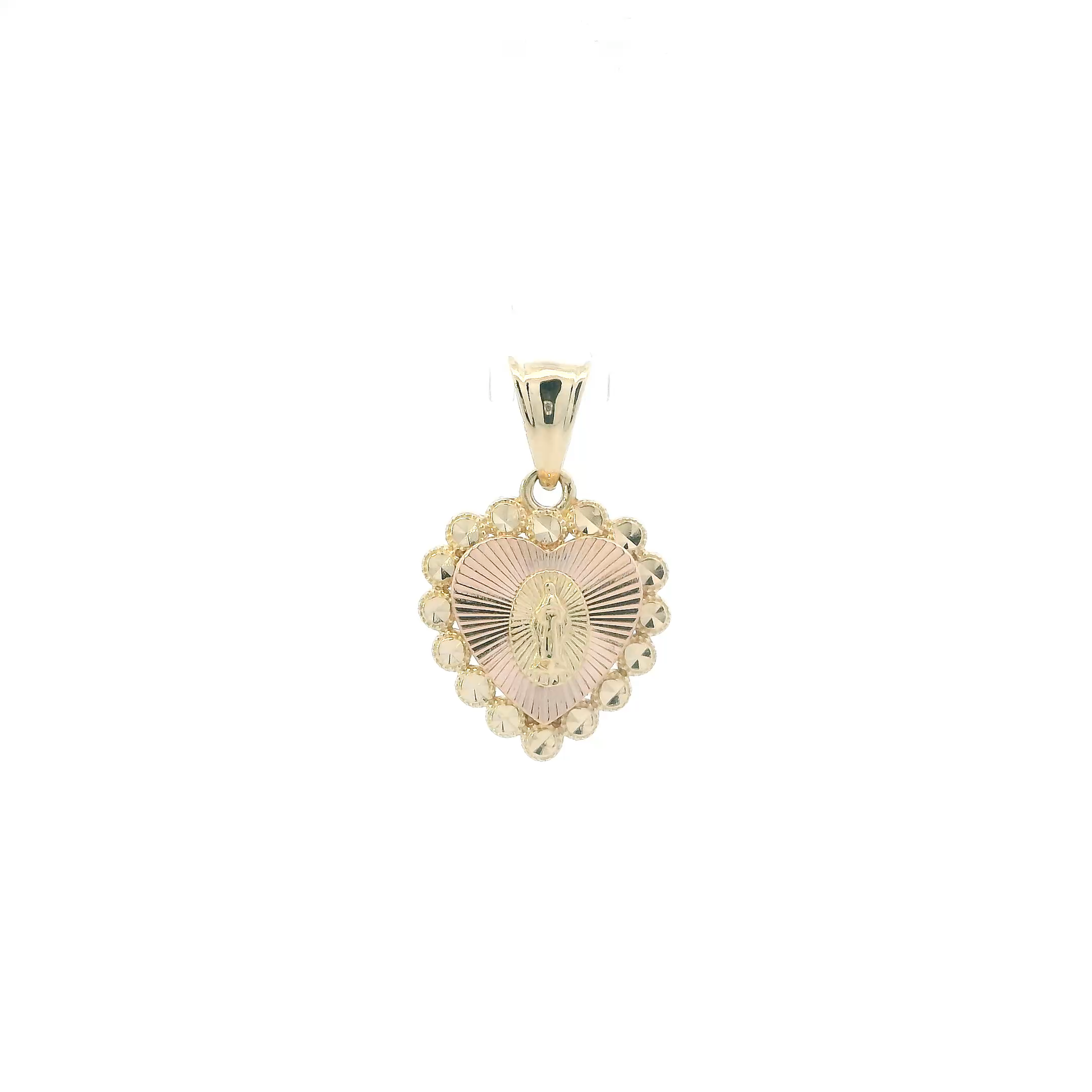 This is a beautiful gold beaded heart religious pendant that is in clean preowned condition. It has been authenticated and polished by our in-house goldsmith / gemologist.