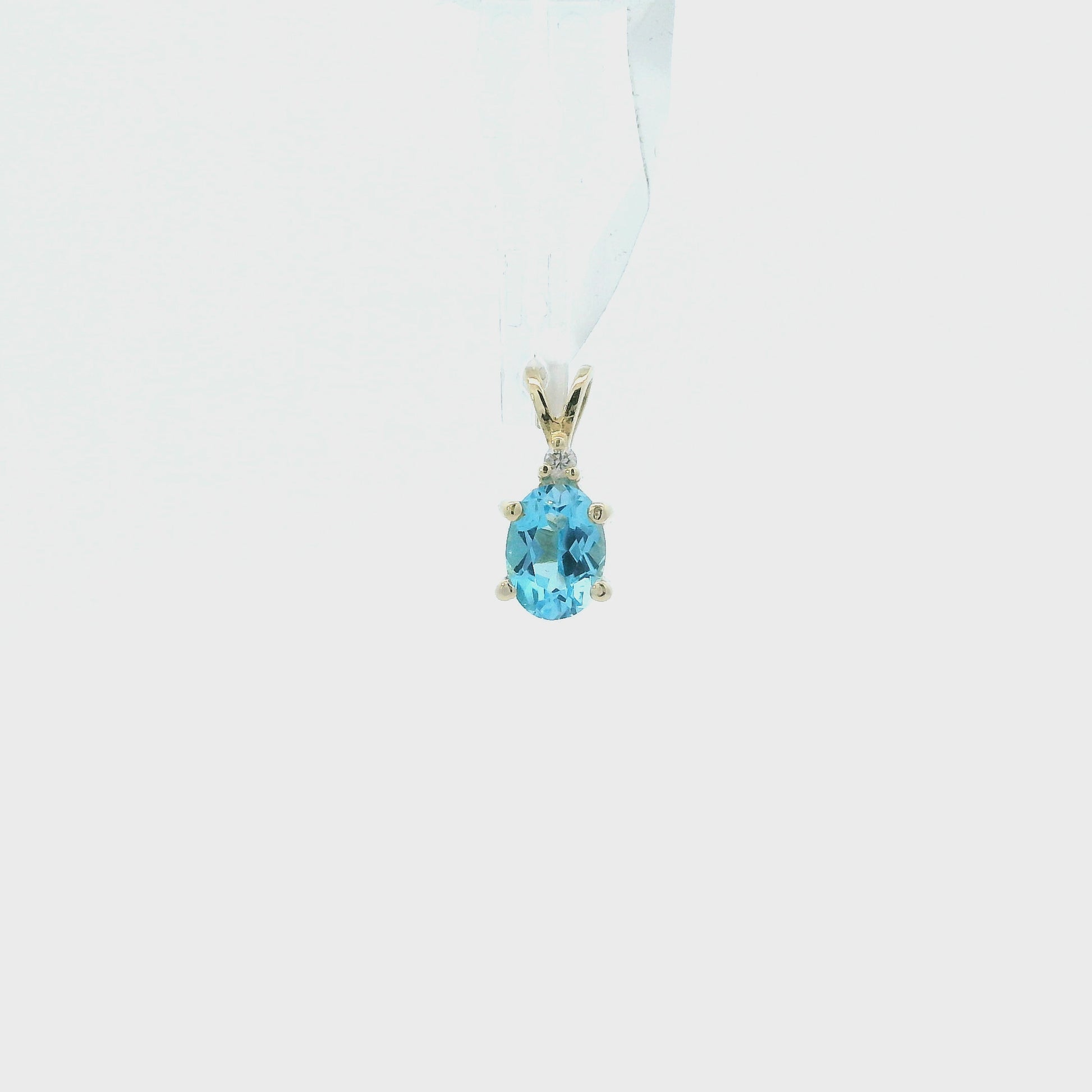 14K Yellow Gold Blue Topaz & Diamond Pendant - 0.02ct