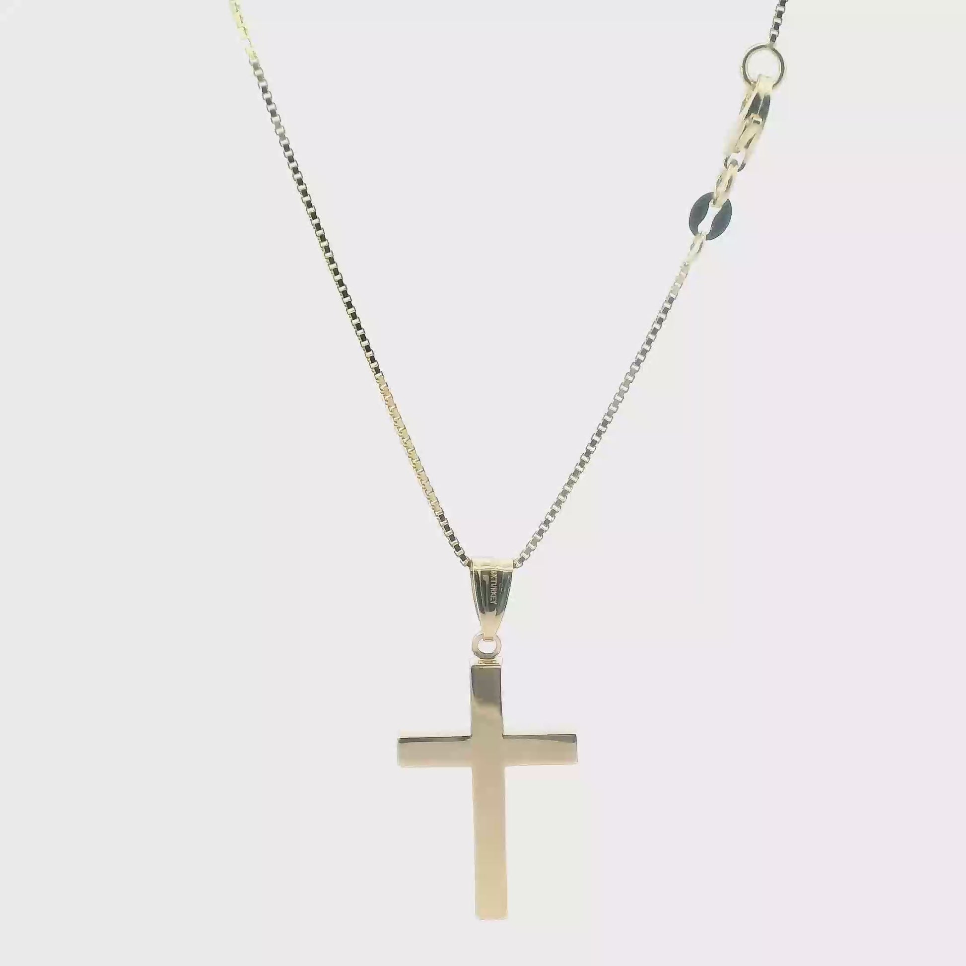 14K Yellow Gold Cross Pendant & 17.5" Box Chain