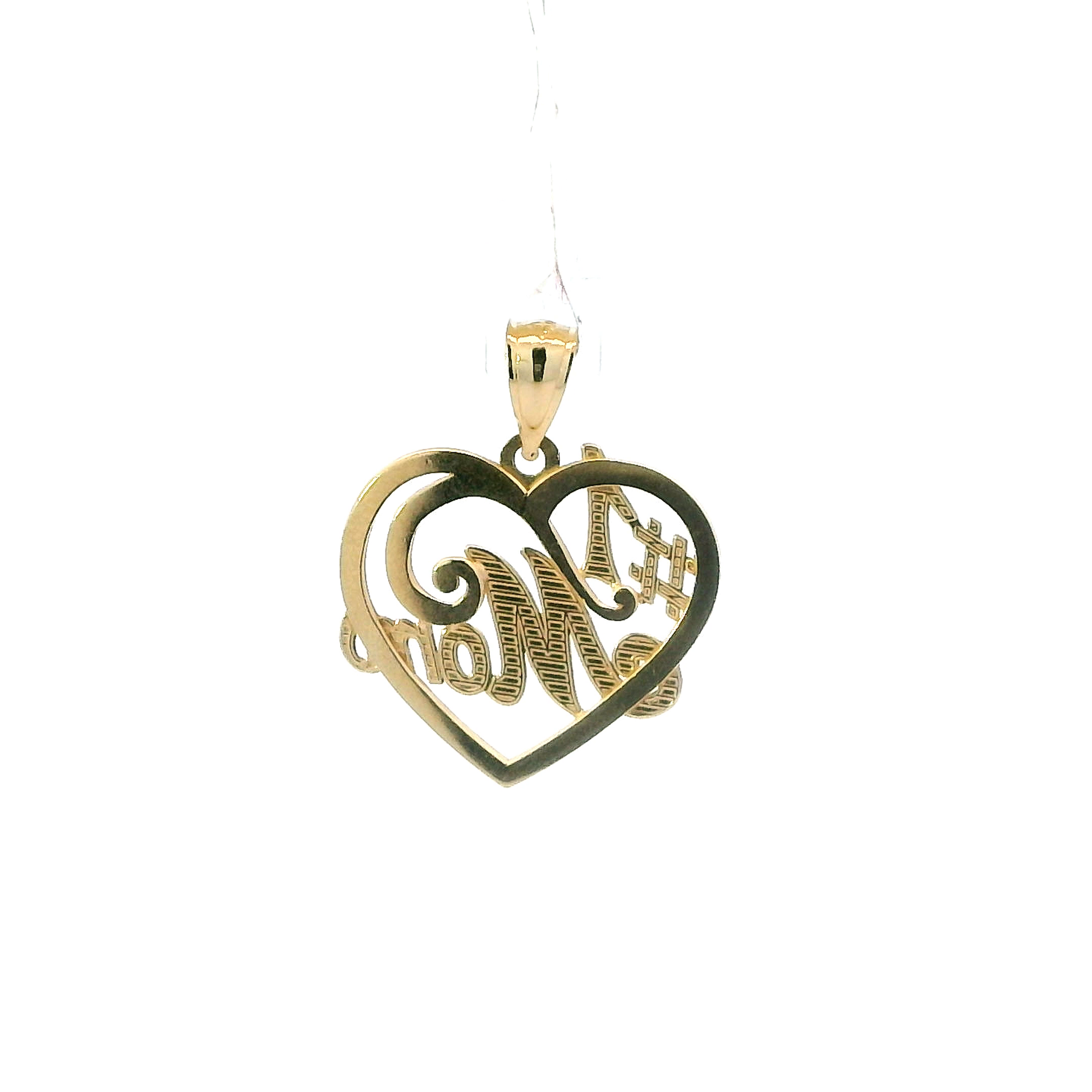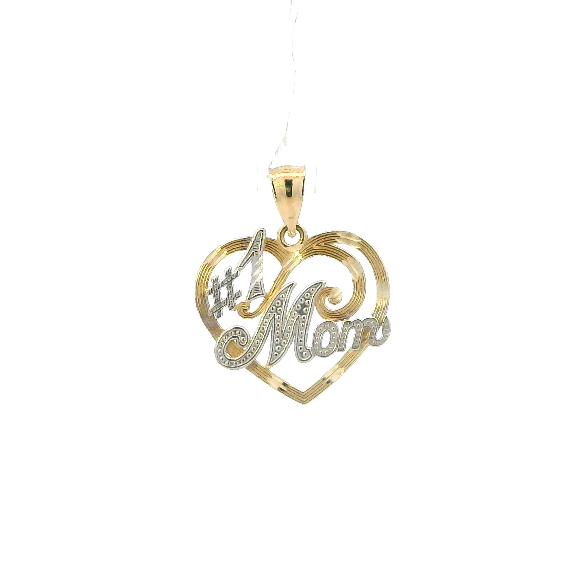 14K Yellow Gold Diamond Cut "#1 Mom " Heart Pendant