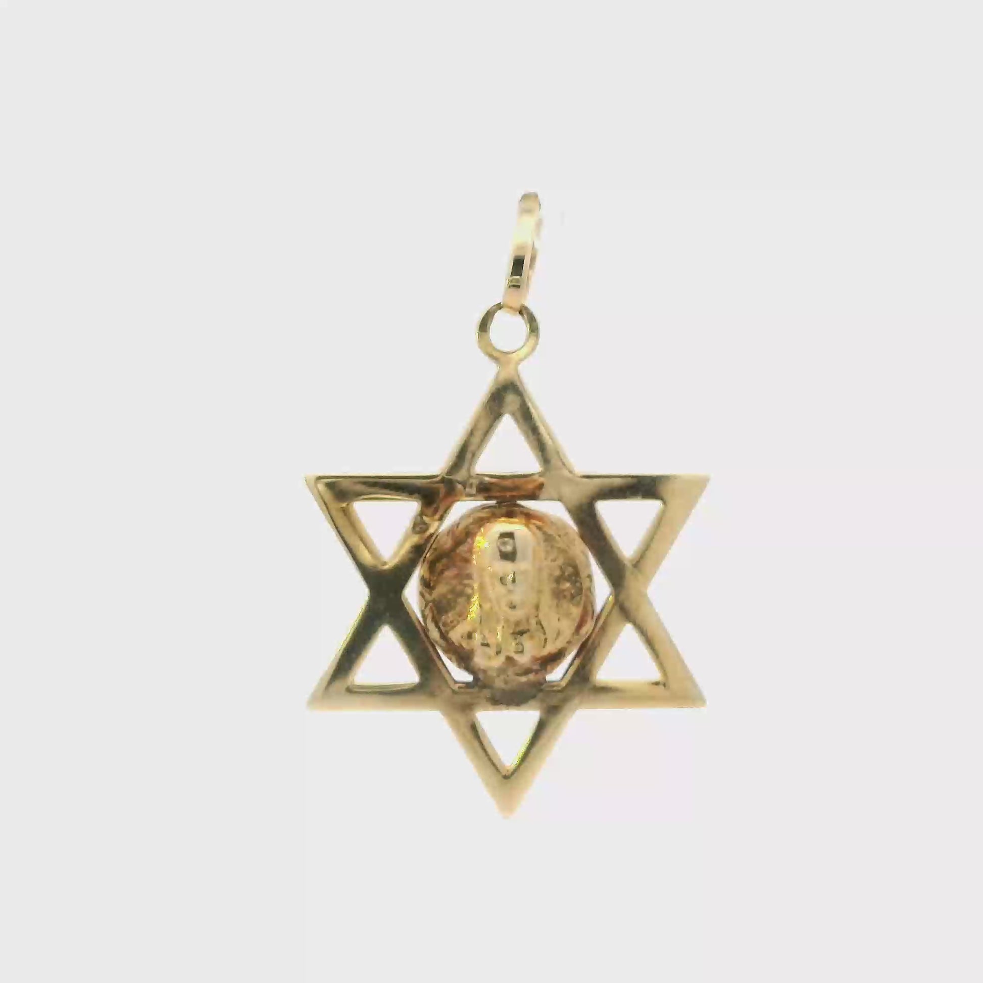 14K Yellow Gold Double Sided Star of David Religious Figure Pendant