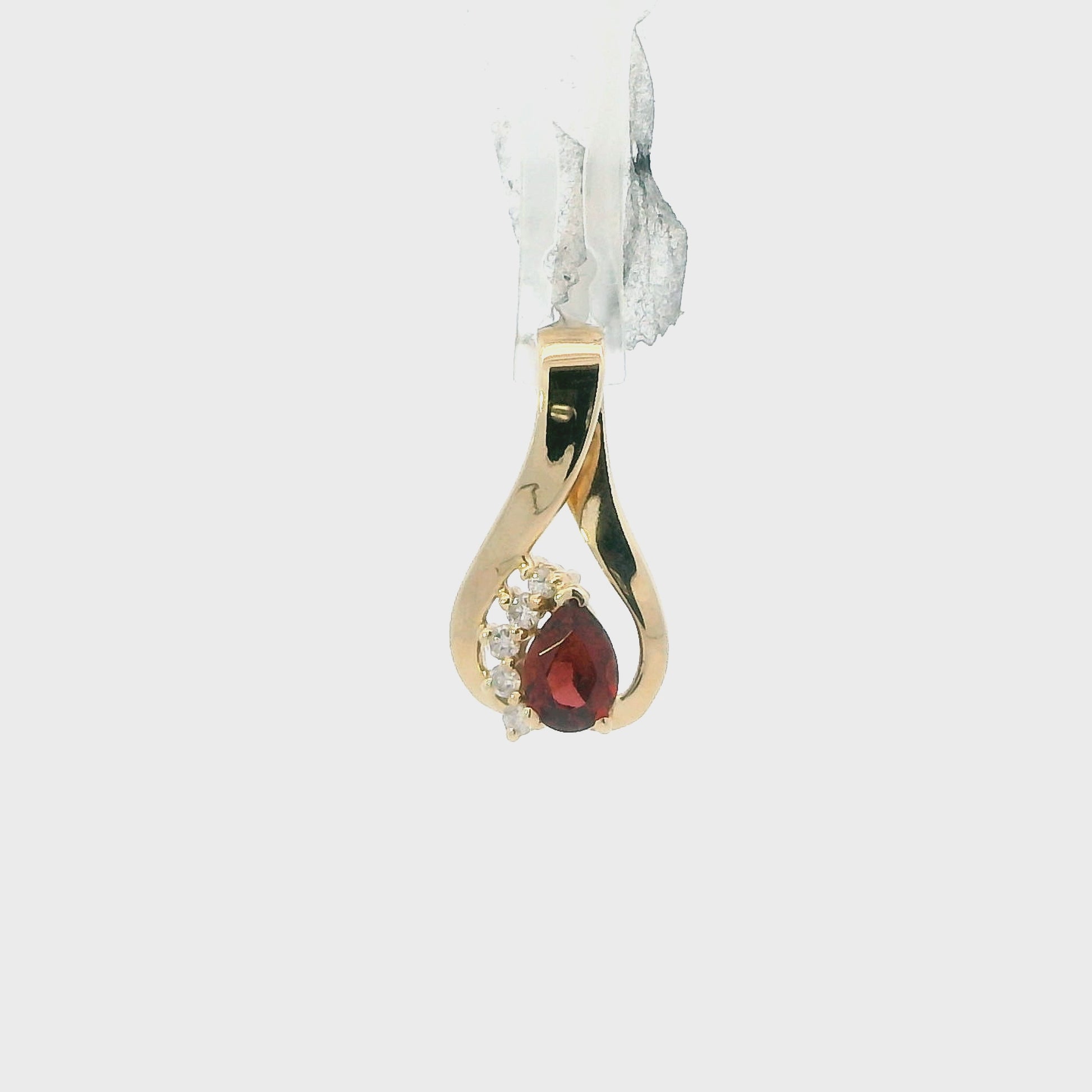 14k Yellow Gold Garnet & Diamond Pendant -0.09ct