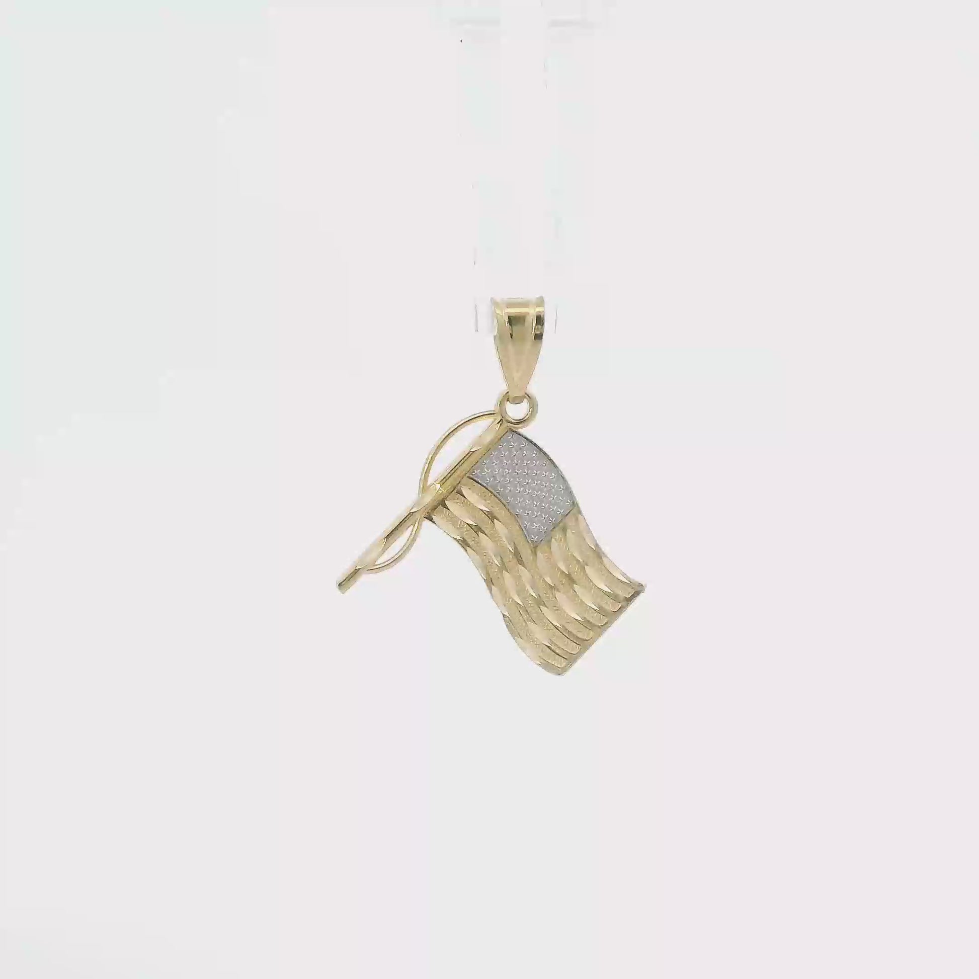 14K Yellow Gold "God Bless America" American Flag Pendant