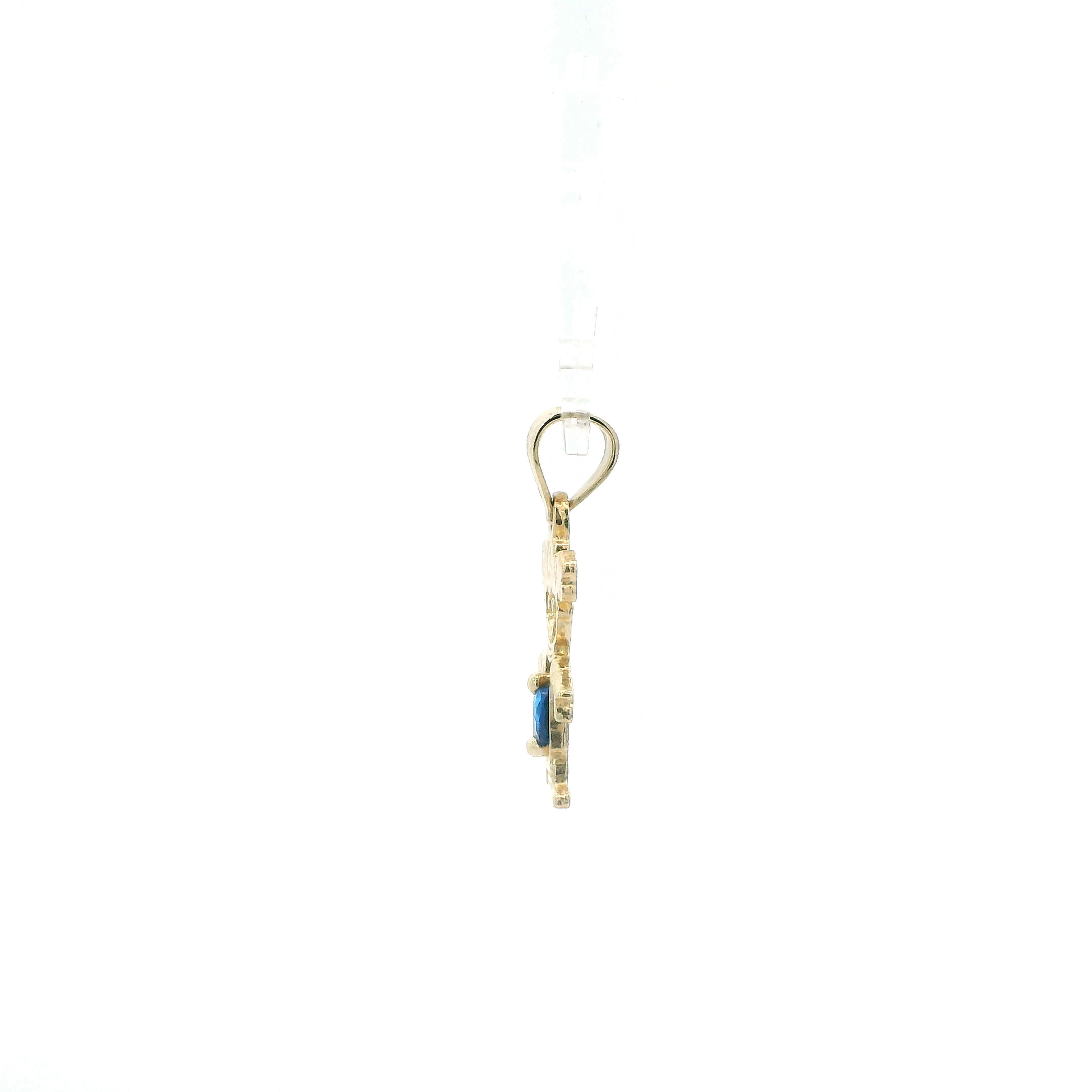 This is a beautiful gold September birthstone child pendant that is in clean preowned condition. It has been authenticated and polished by our in-house goldsmith.