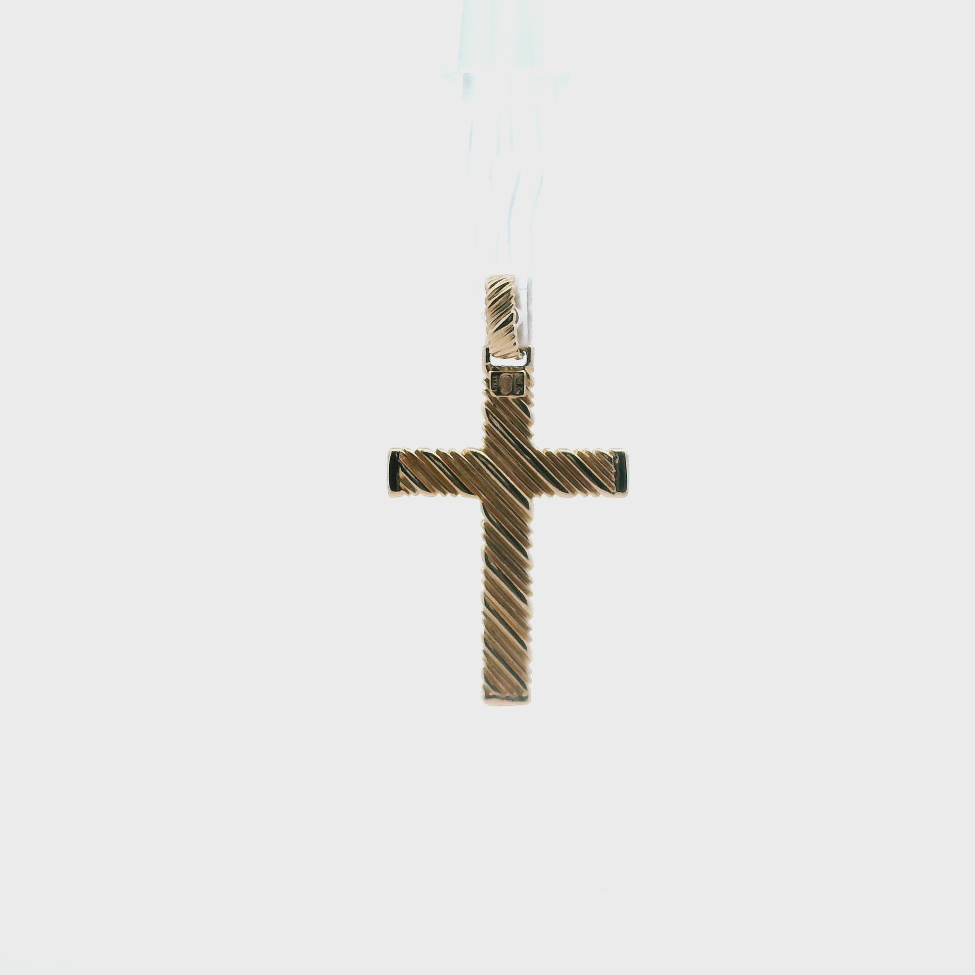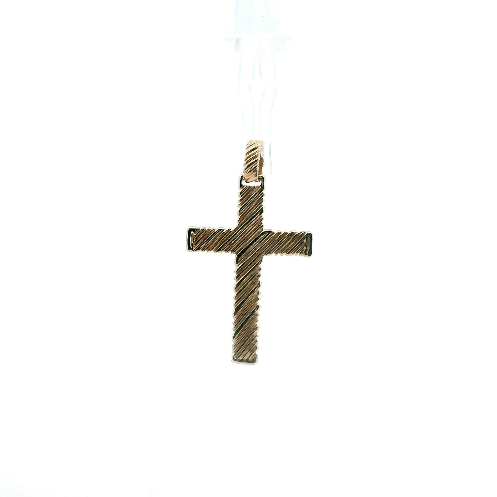 14K Yellow Gold Lined Cross Pendant