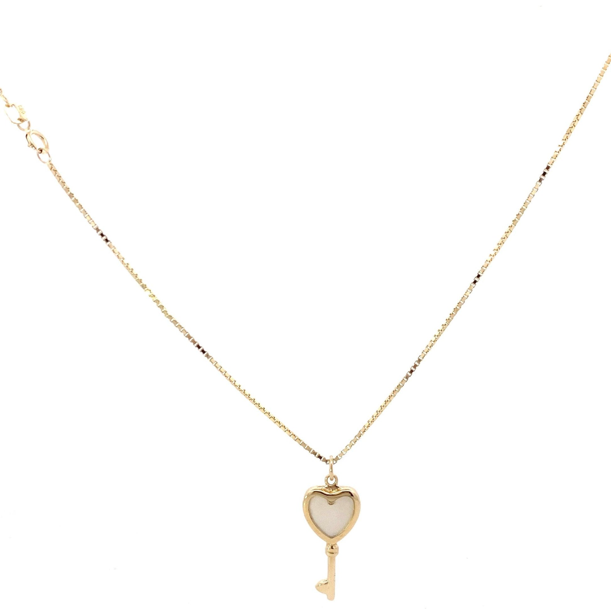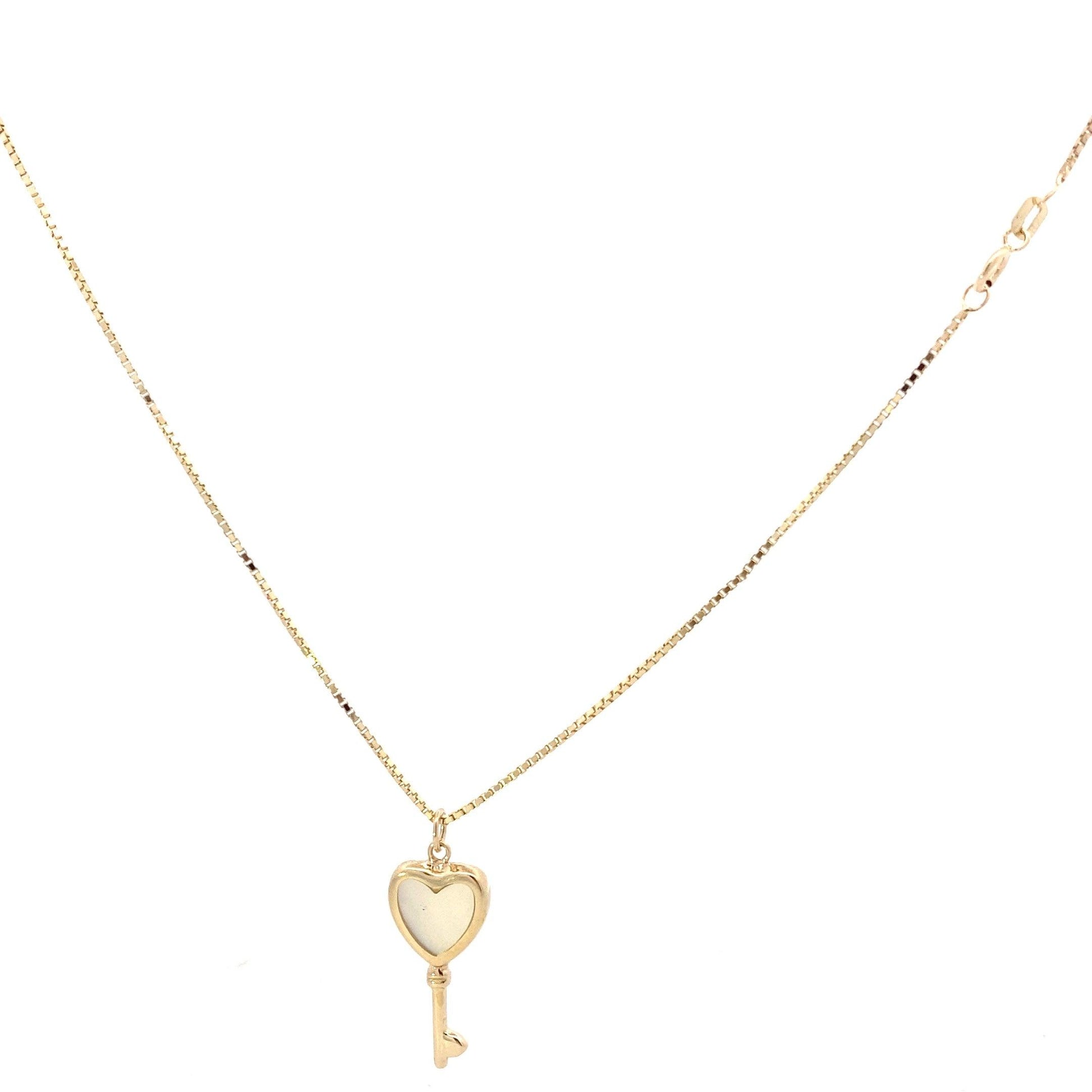 14K Yellow Gold Mother of Pearl Heart Key Necklace